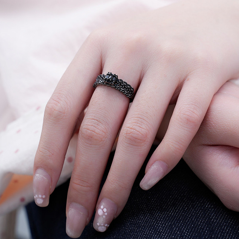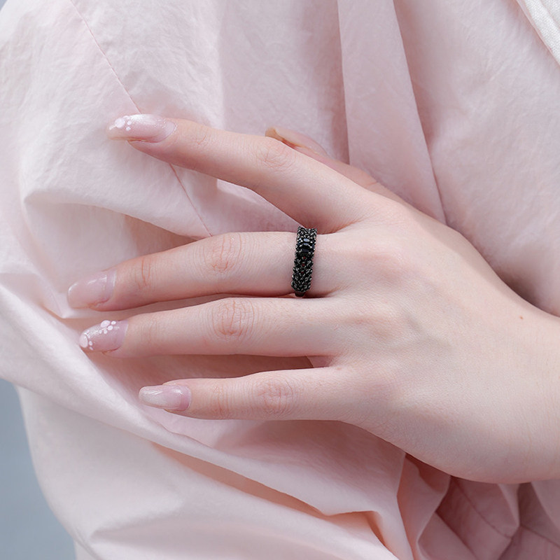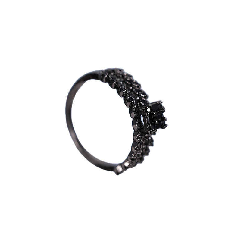 白狐狸中东款轻奢简约铜镶黑色锆石戒指小众设计感稻穗叠戴指环女