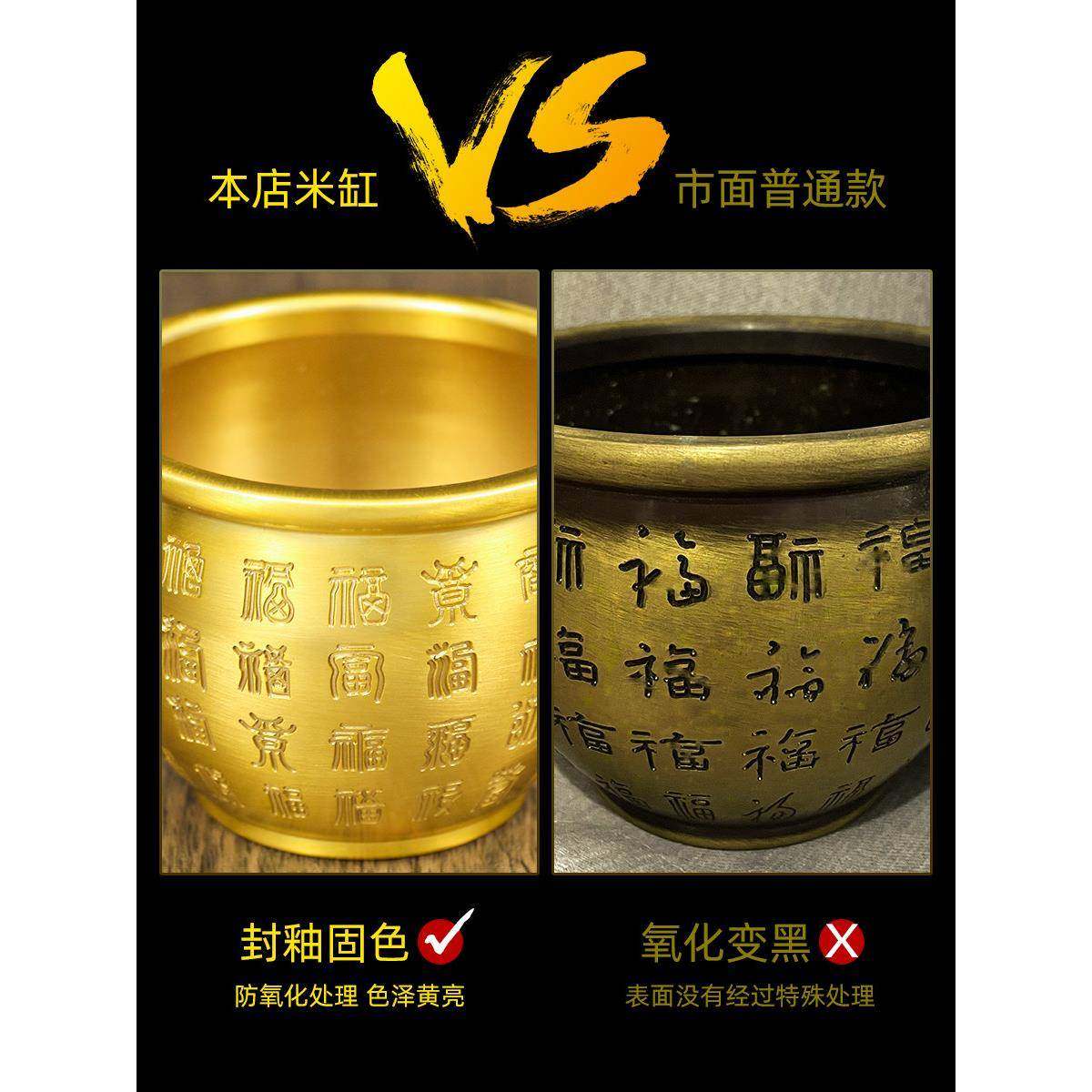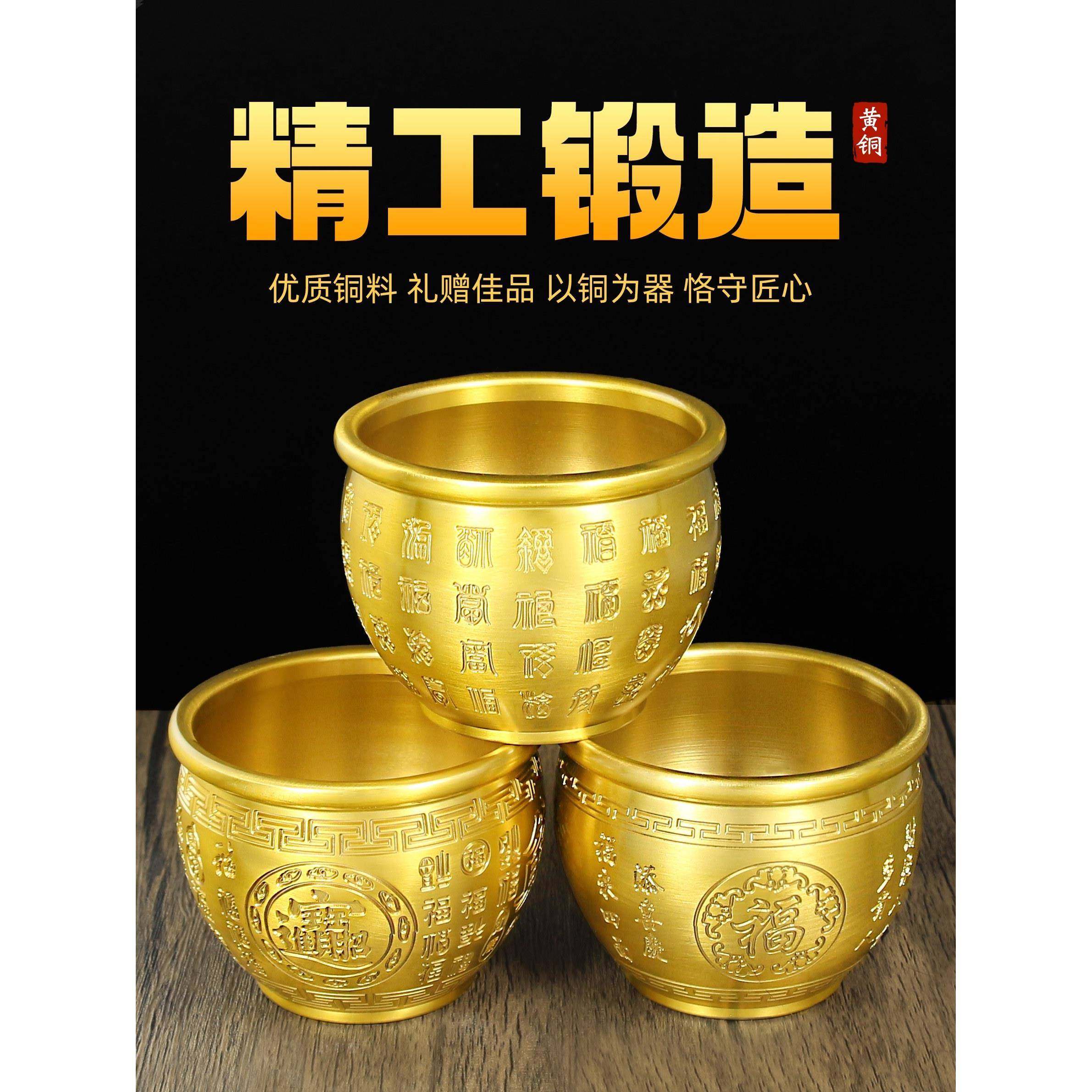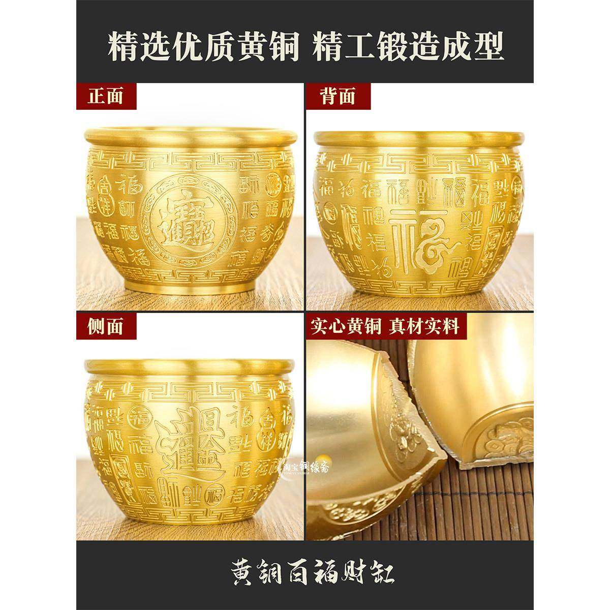 黄铜米缸铜缸铜制百福缸冰箱上聚宝盆摆件存钱罐财缸福字缸装饰品