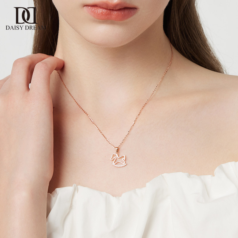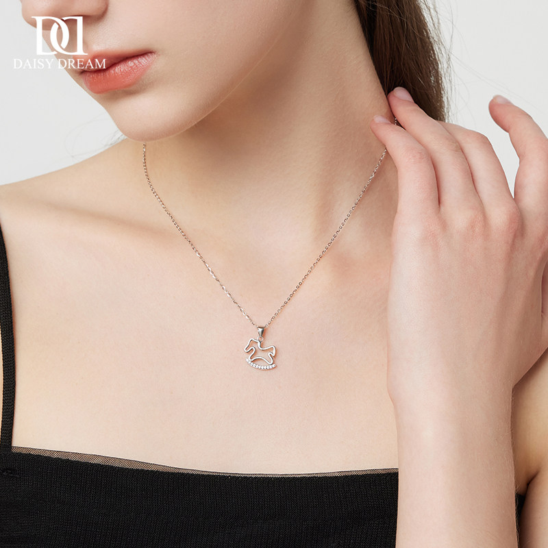 925纯银镶钻木马项链女款轻奢小众锁骨链2026新款高级感颈链配饰