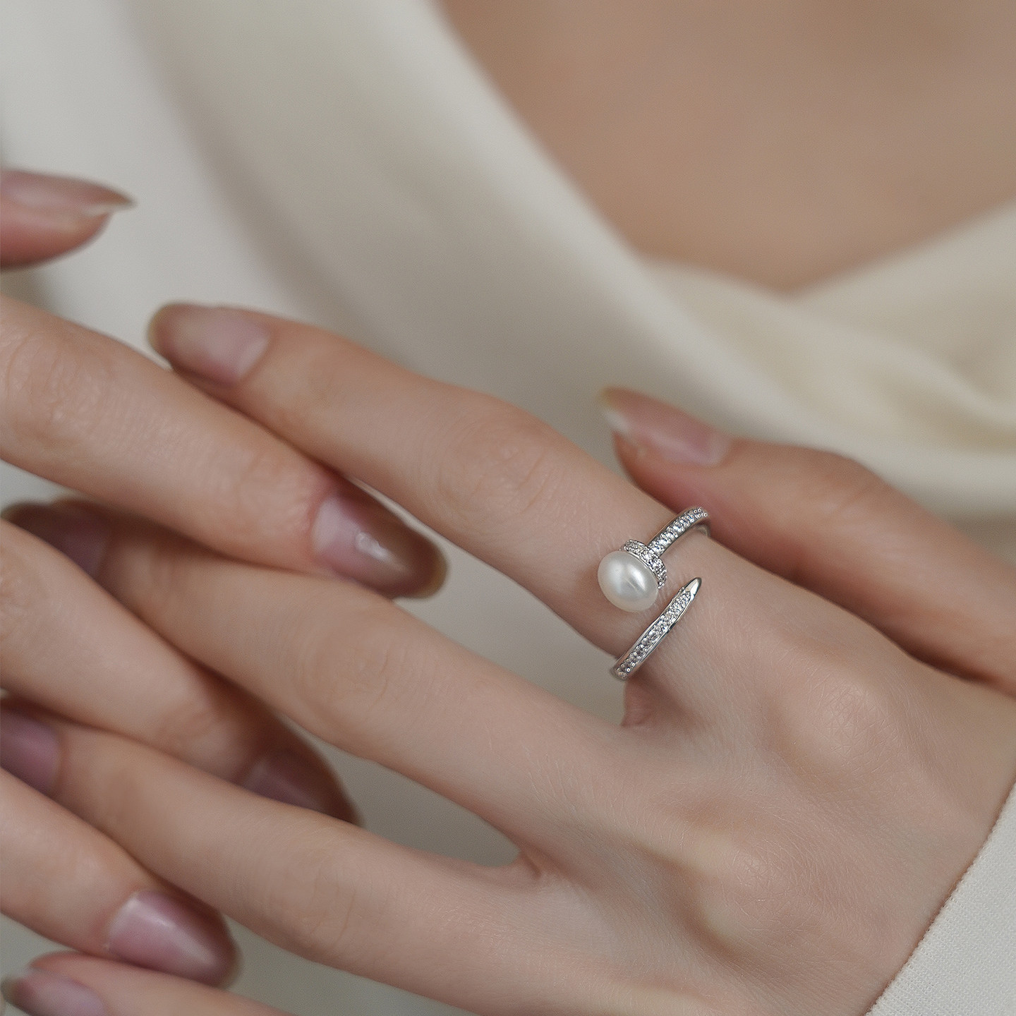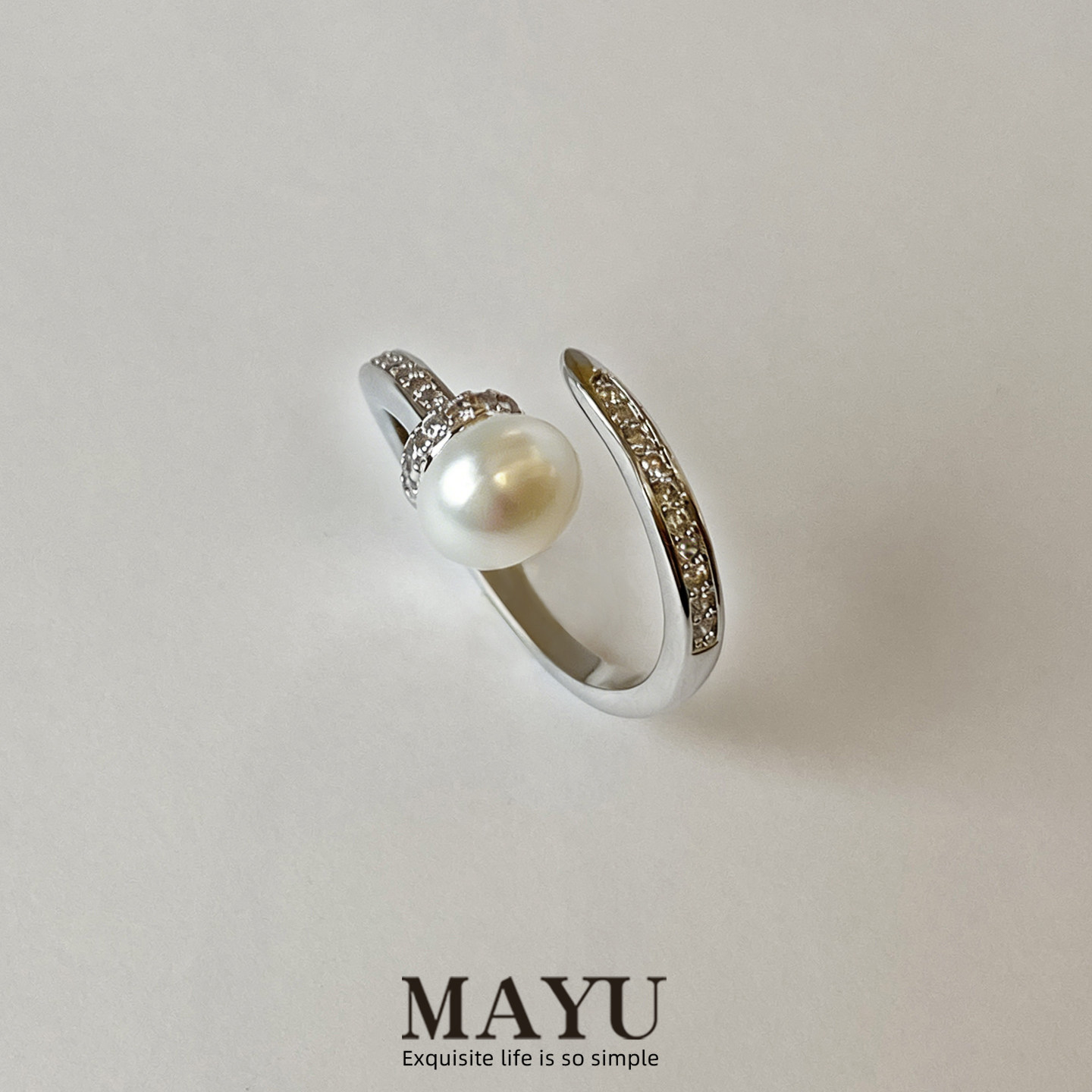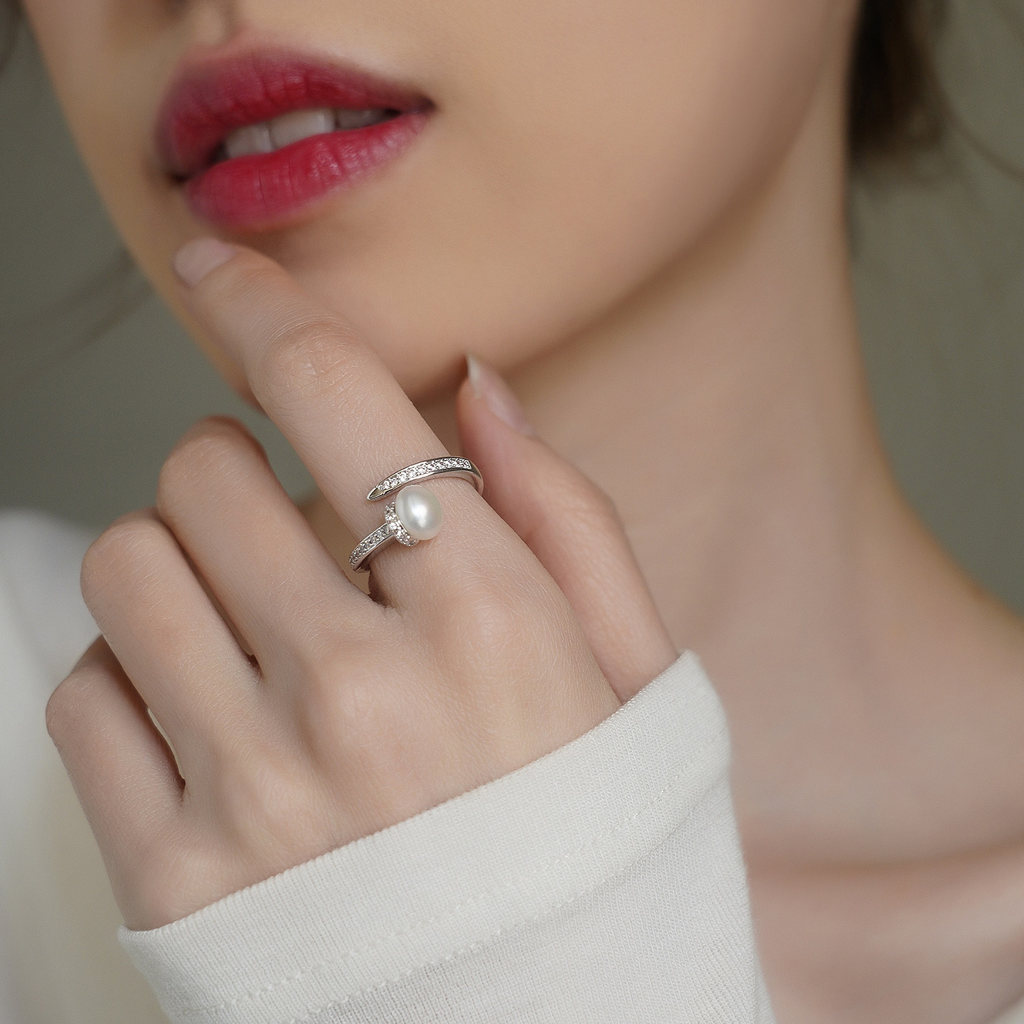 澳白色珍珠戒指女2026新款爆款开口食指戒轻奢高级感小众精致指环
