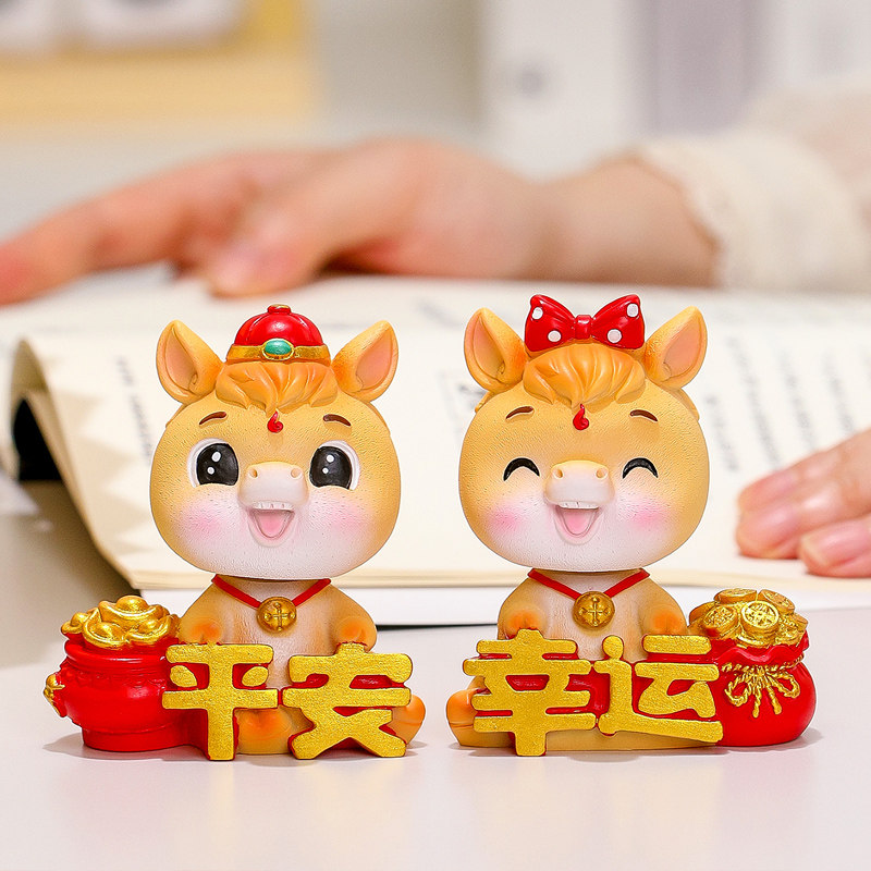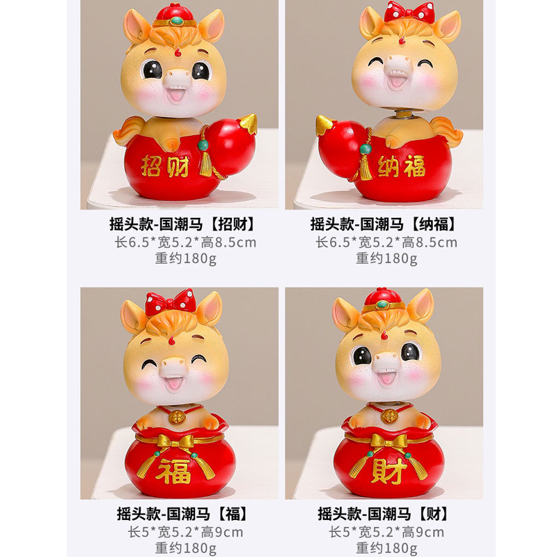 国潮马小摆件2026年新款车载摇头吉祥物生肖马公仔中控台车载饰品