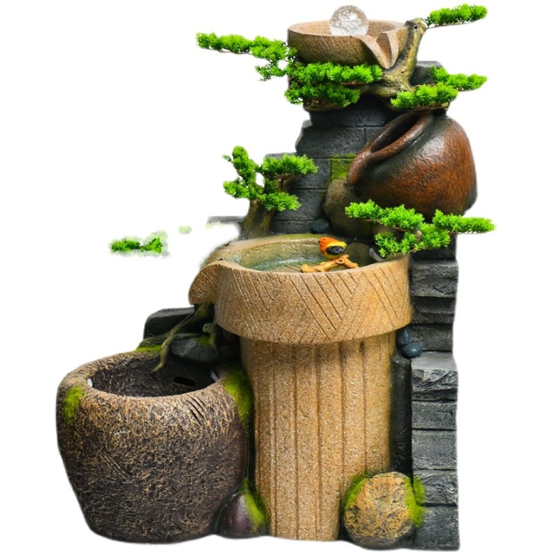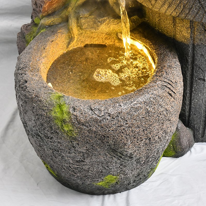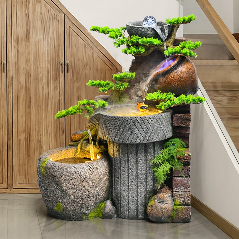 阳台花园楼梯转角落田园老石槽装饰假G山喷泉流水景观造景装饰摆