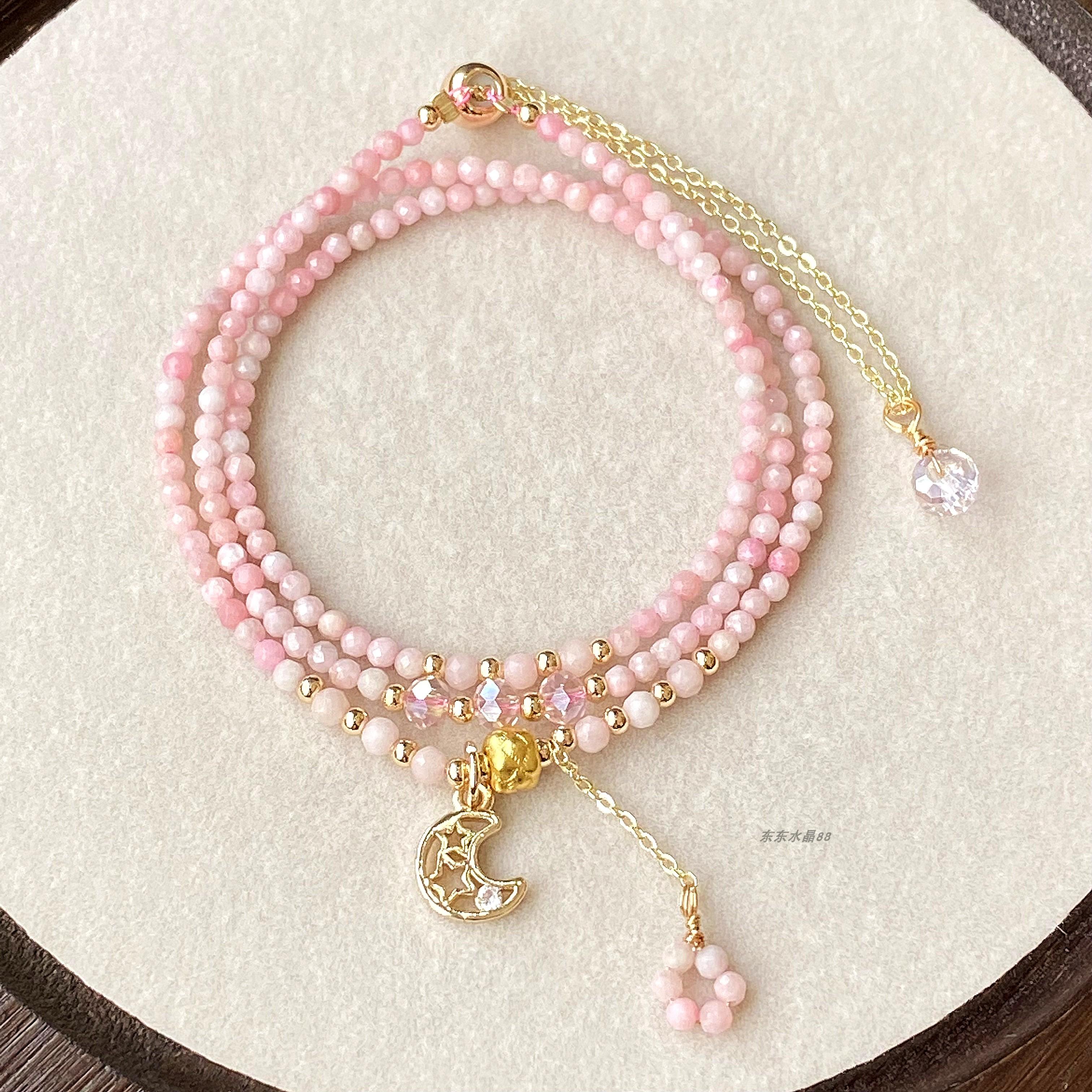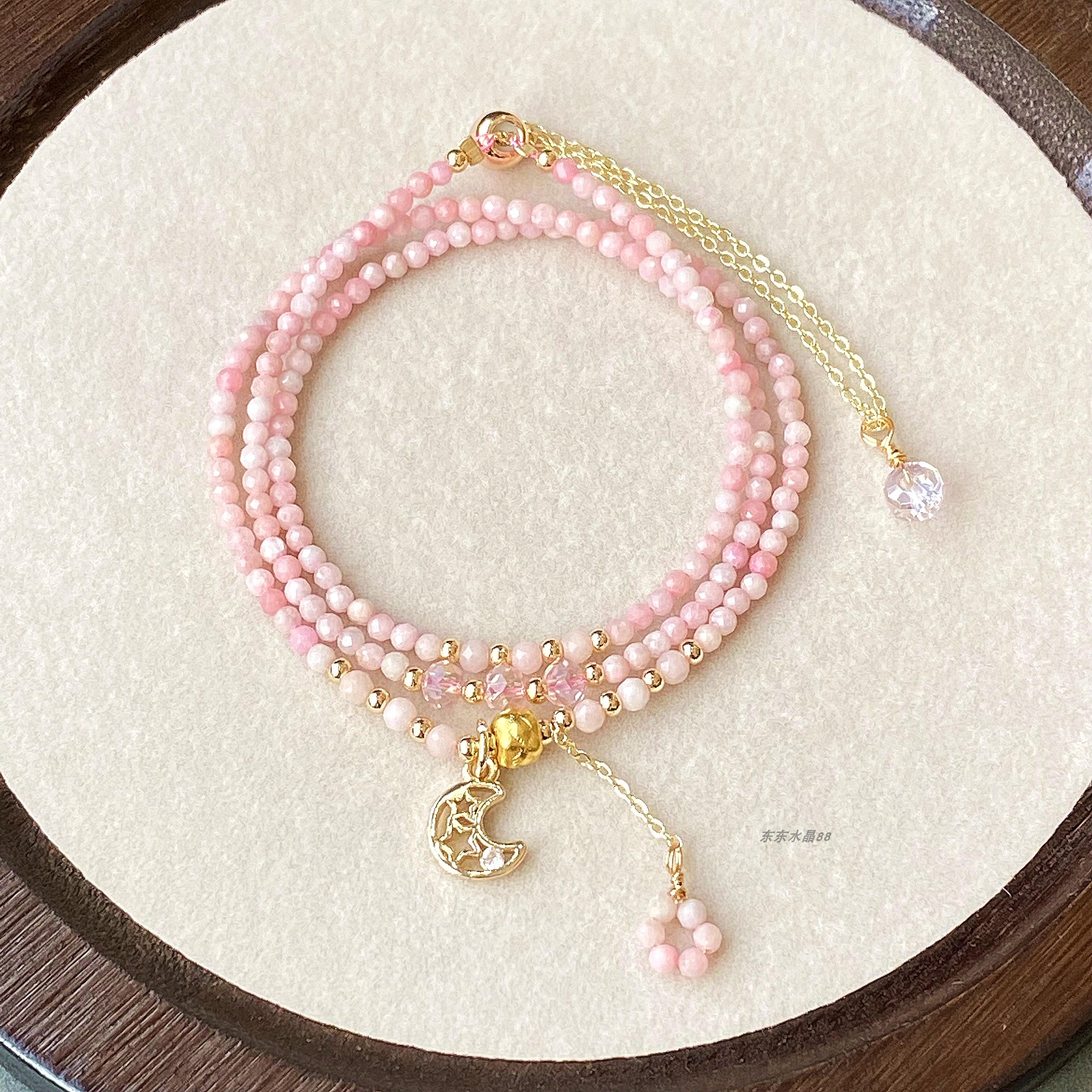 天然粉澳宝欧泊蛋白石切面三圈多层 女款 手链手串手饰