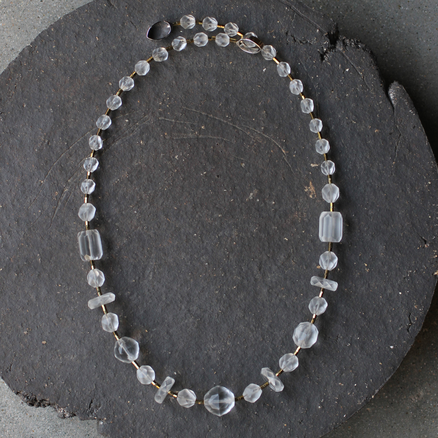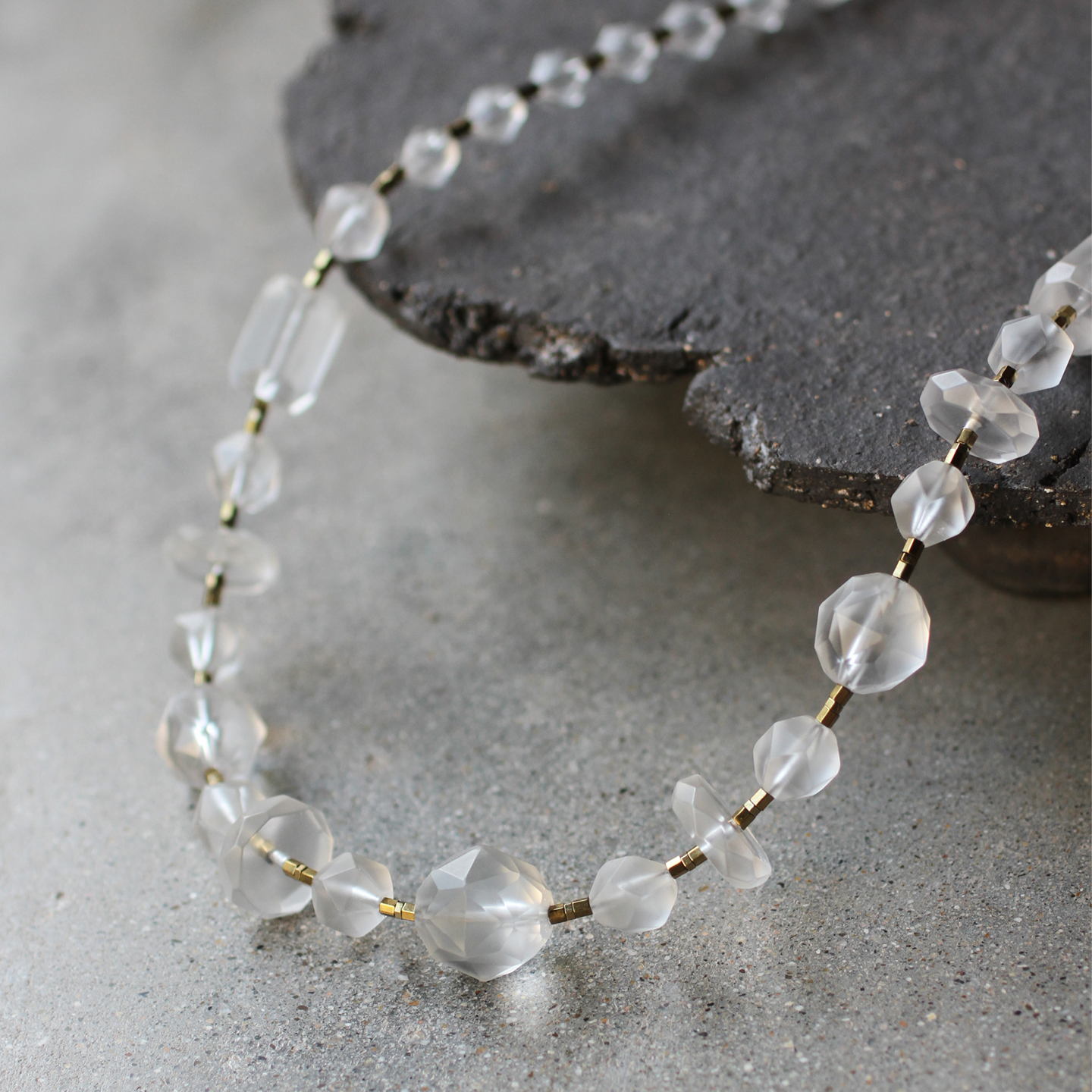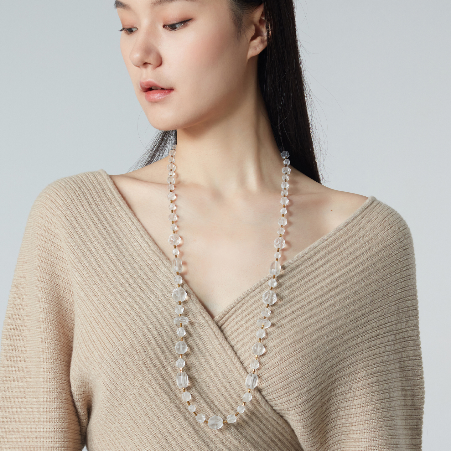 朗睦原创天然磨砂白水晶手工切割小众新中式串珠定制长短款项链女