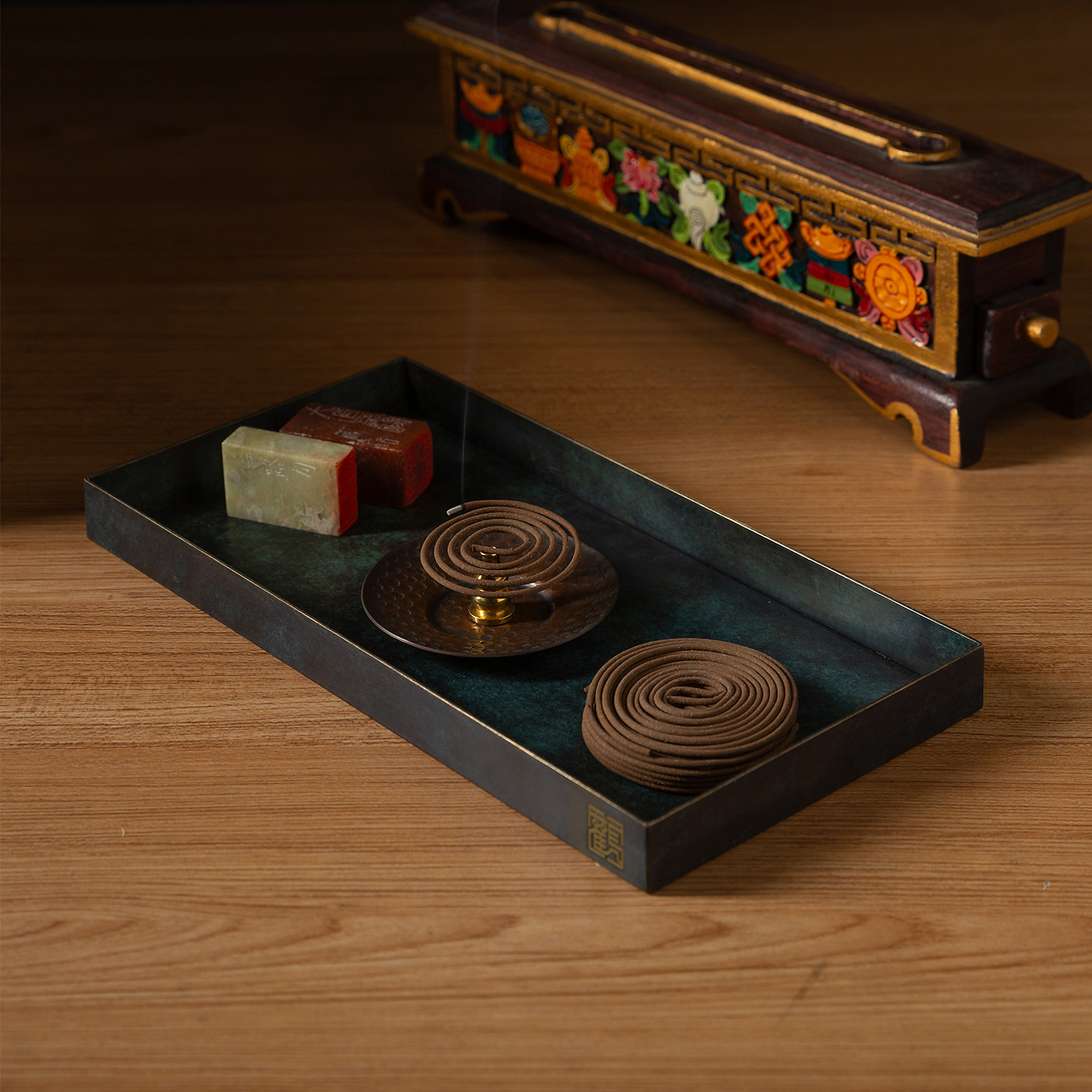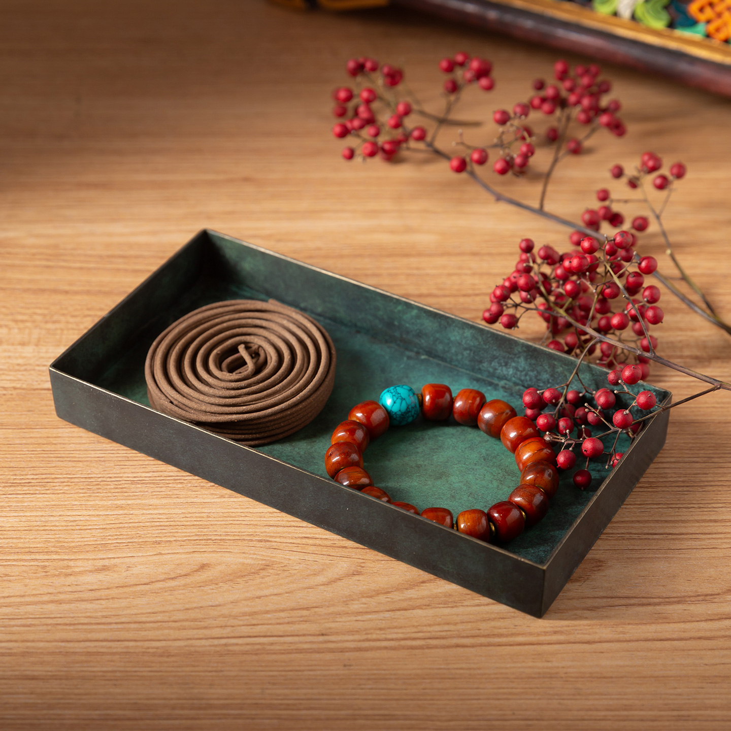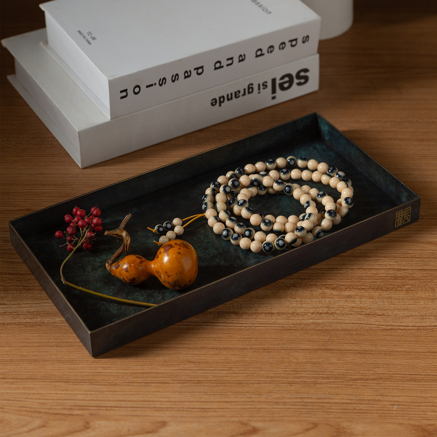 黄铜托盘摆件隔断收纳盒家居客厅玄关柜子办公室桌面实用摆设礼品