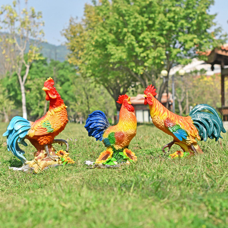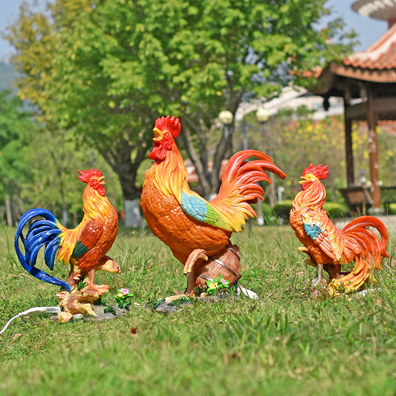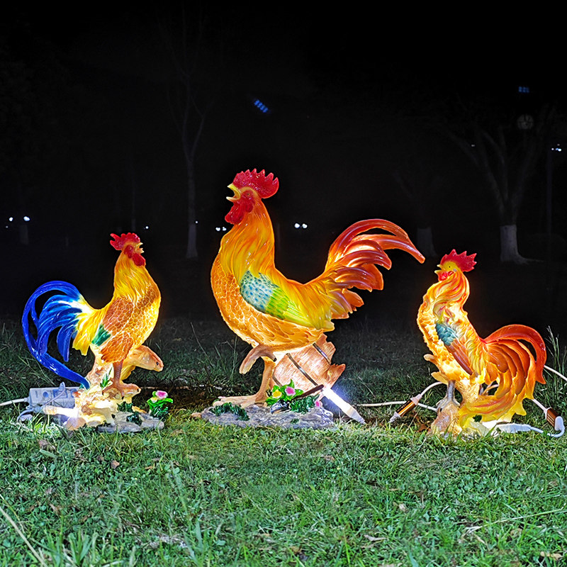 户外仿真发光大公鸡玻璃钢母鸡雕塑别墅庭院店门口动物装饰品摆件