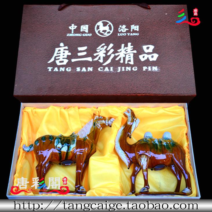 唐三彩陶瓷对马骆驼工艺品家居具摆设件送礼物商务高档收藏