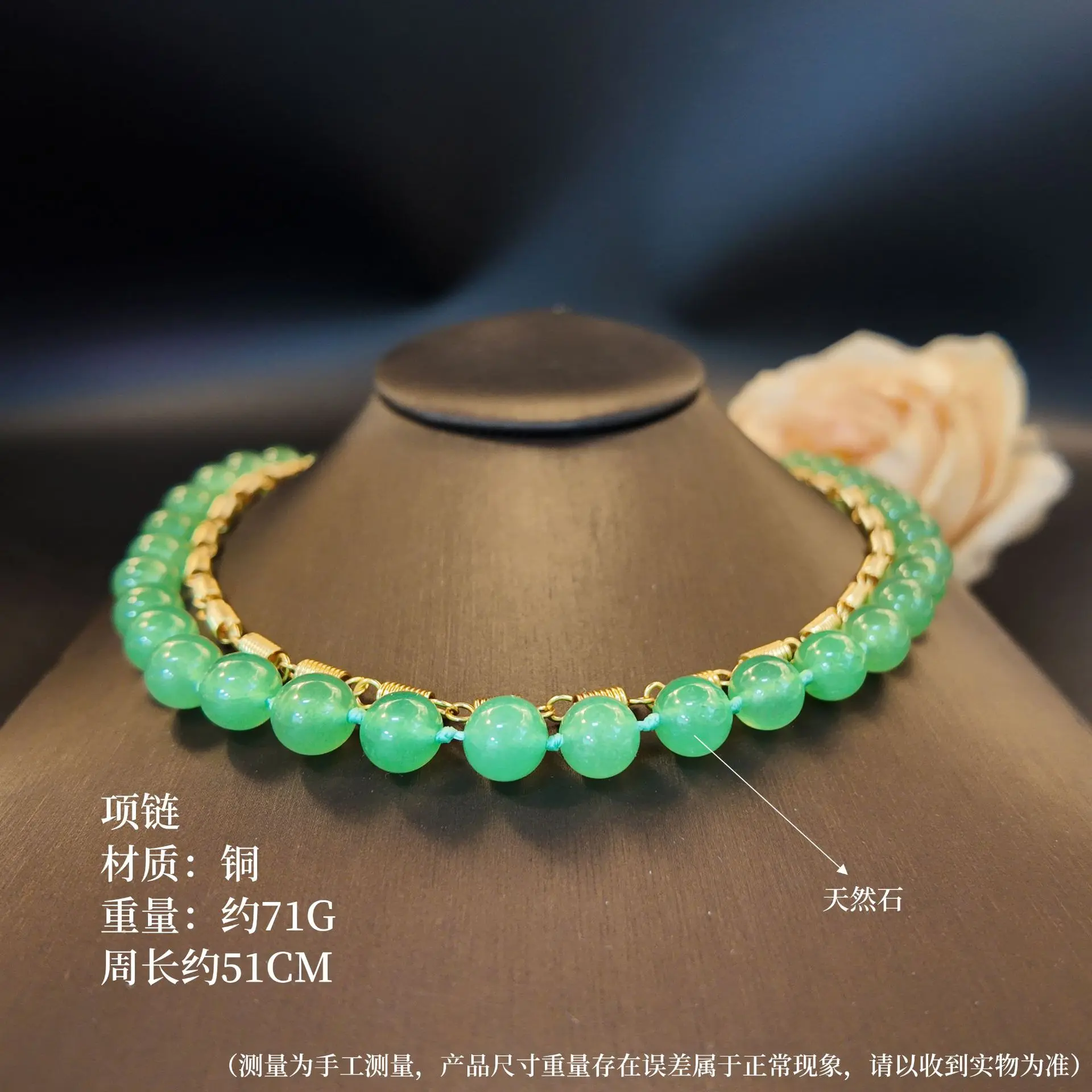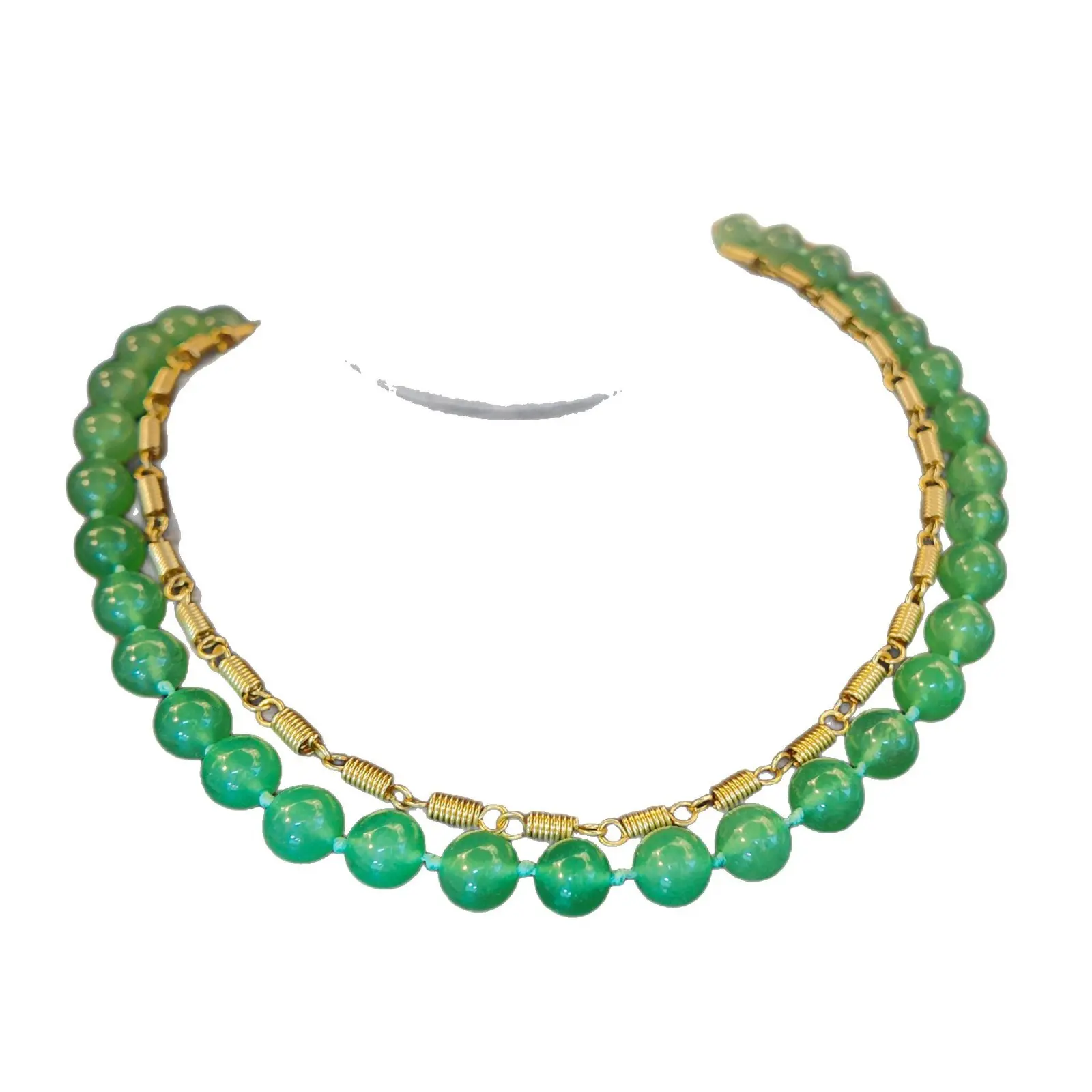 高级感双层绿色天然石串珠弹簧链项链女时尚优雅通勤百搭饰品