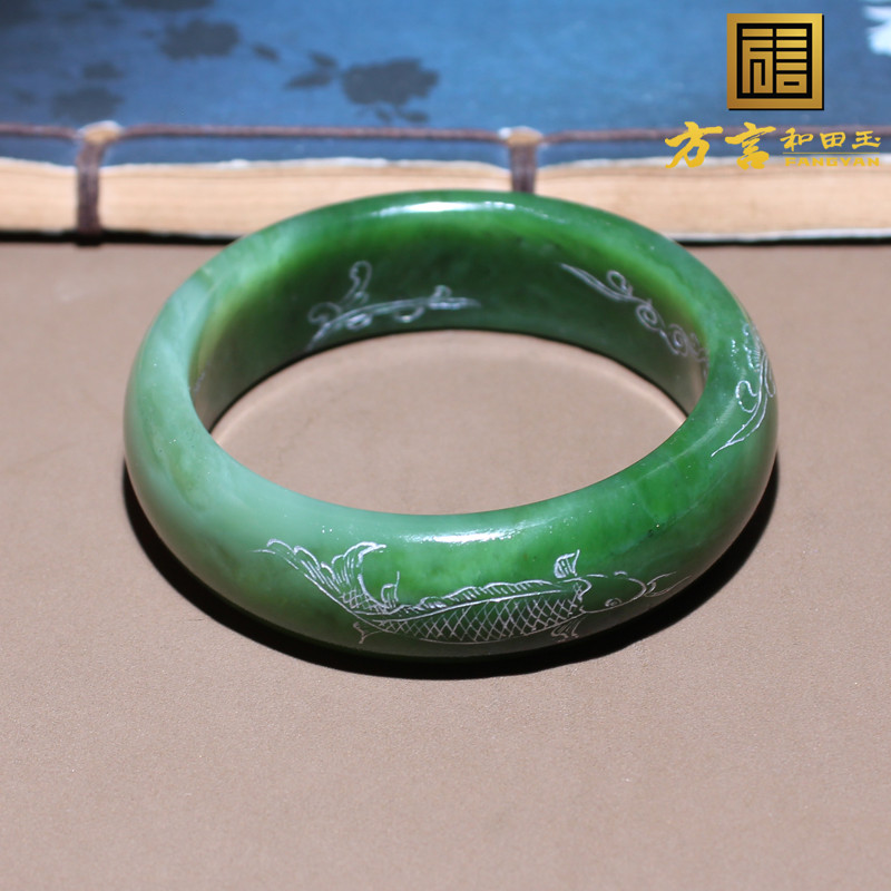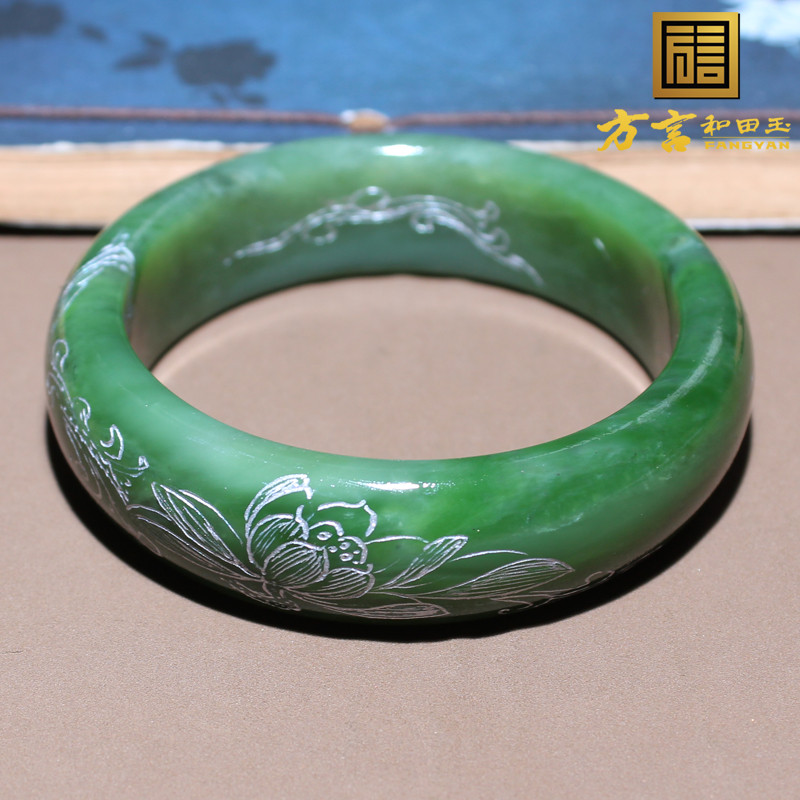方言和田玉精品俄罗斯碧玉菠菜绿粉青双色花开富贵内径54mm手镯O8