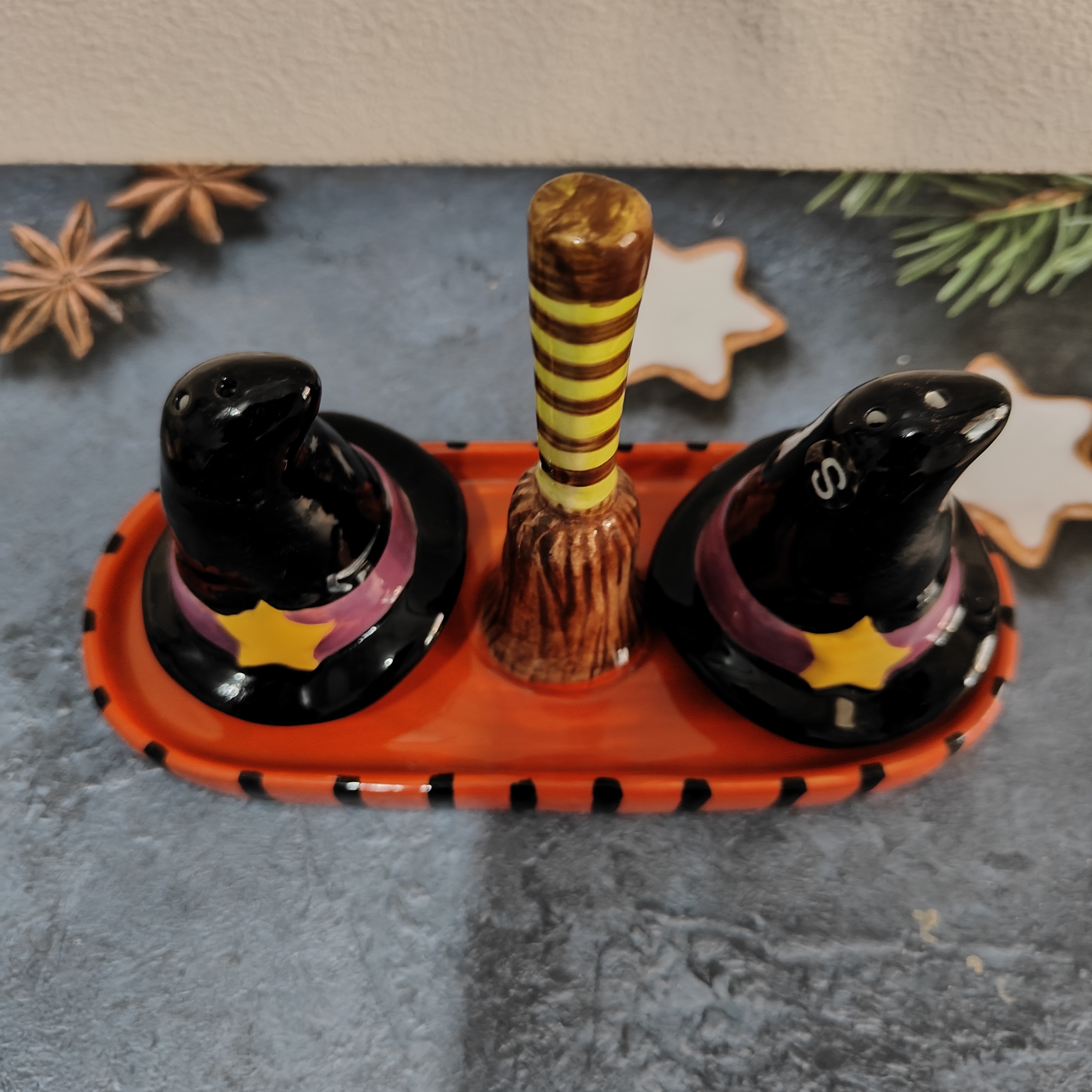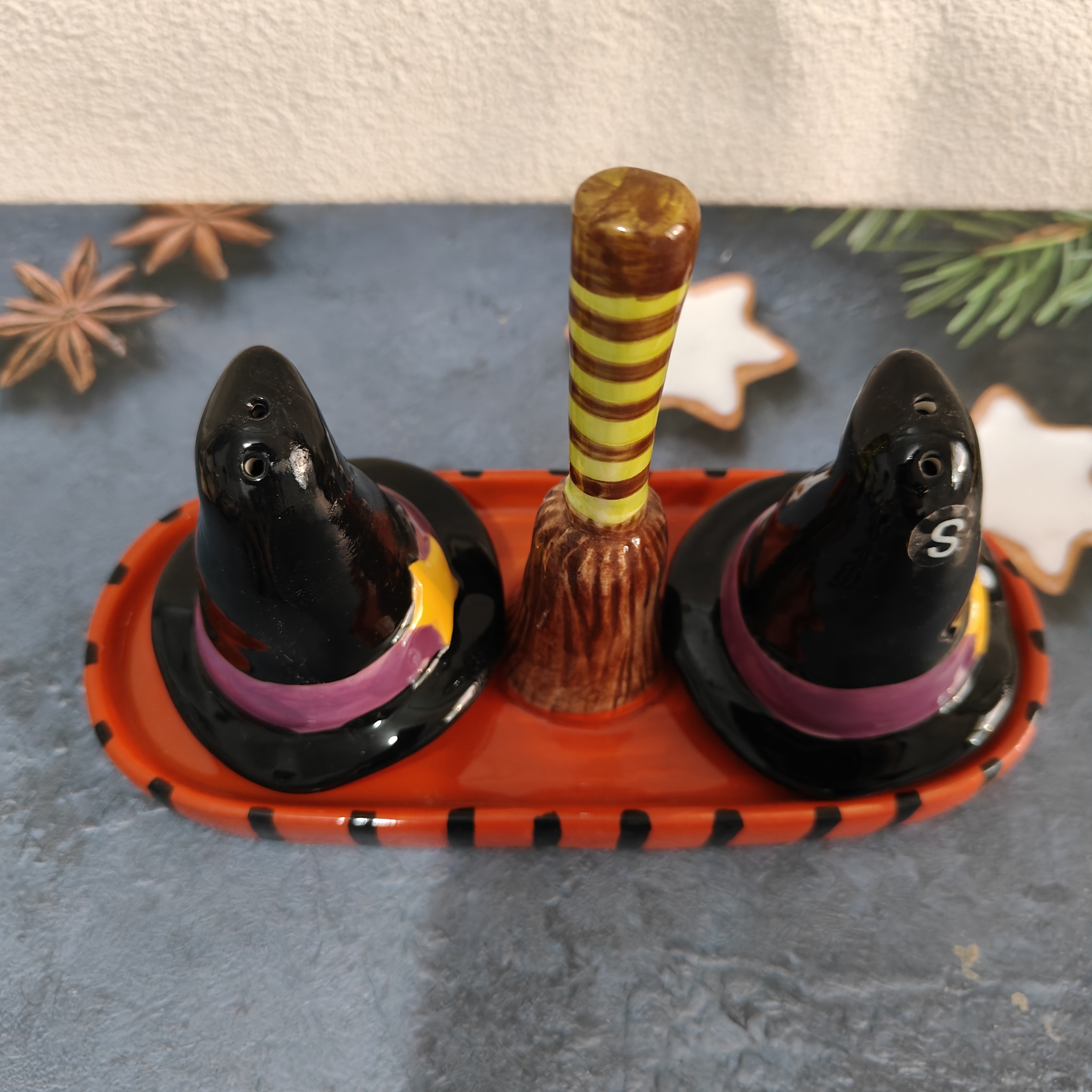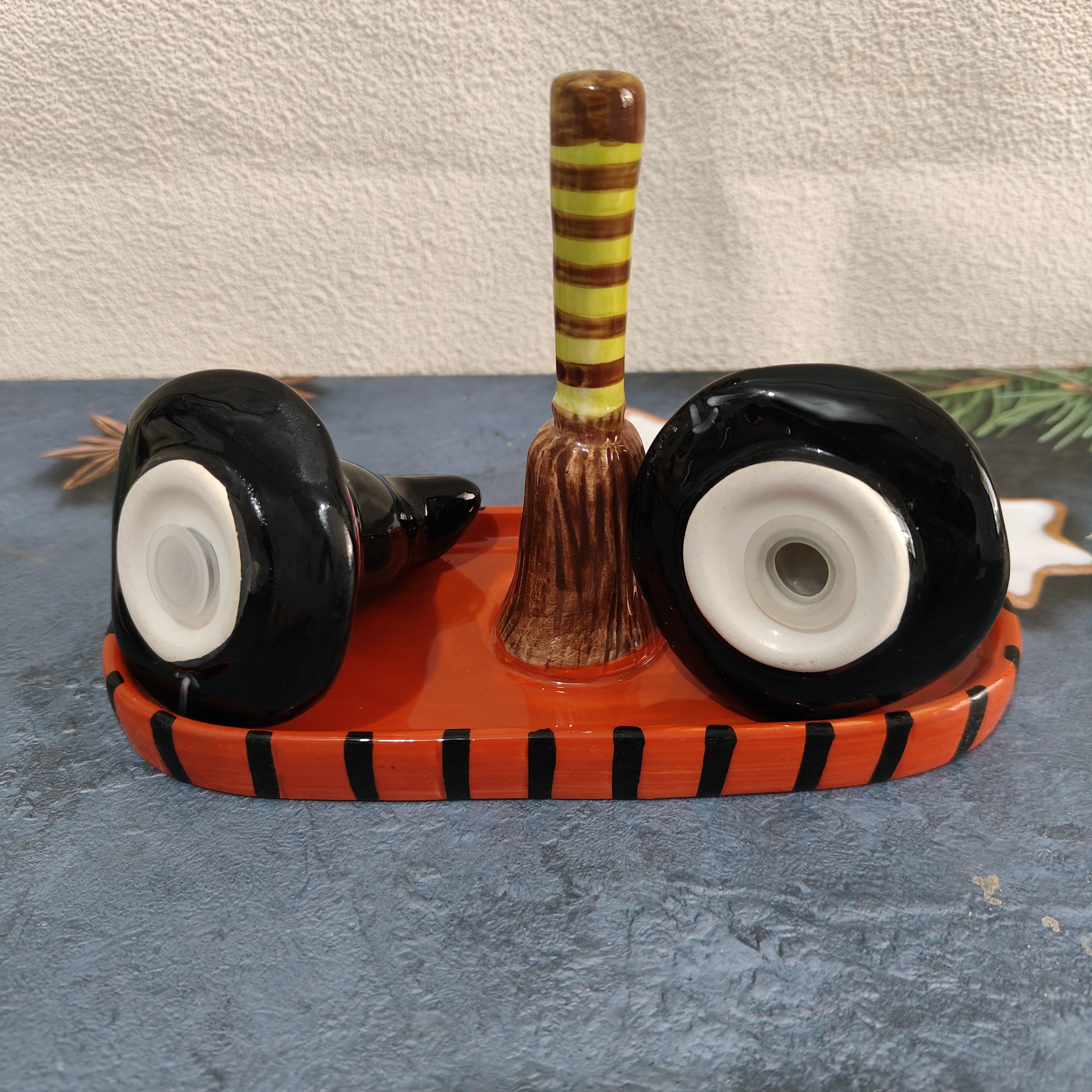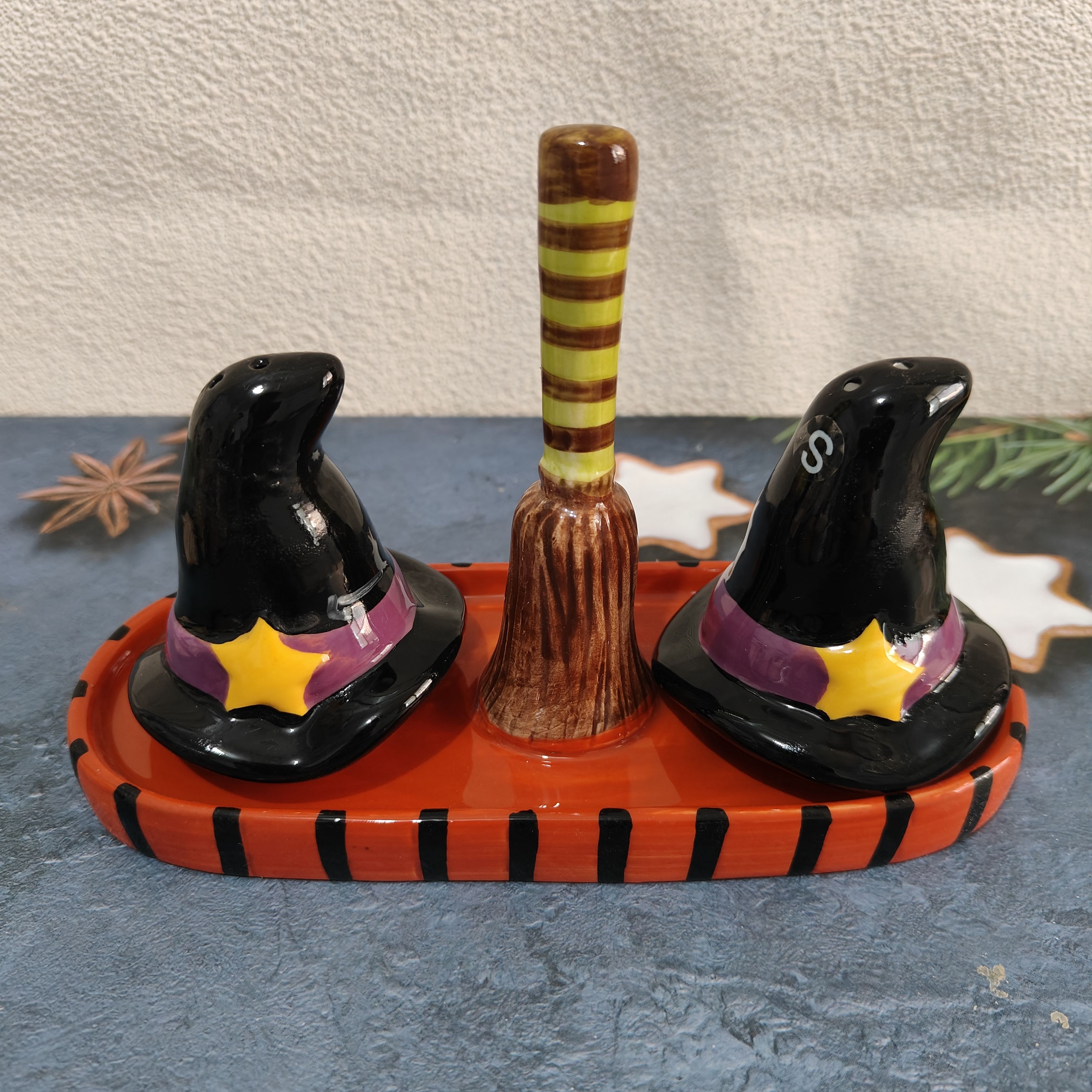 外贸出口万圣节扫帚帽子陶瓷胡椒罐收纳罐子摆件装饰品万圣节礼物