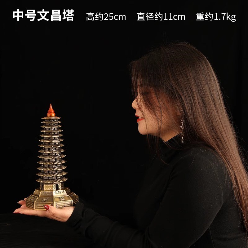 全铜文昌塔摆件九层客厅书房办公室书桌工艺品黄铜制Y品9层装饰