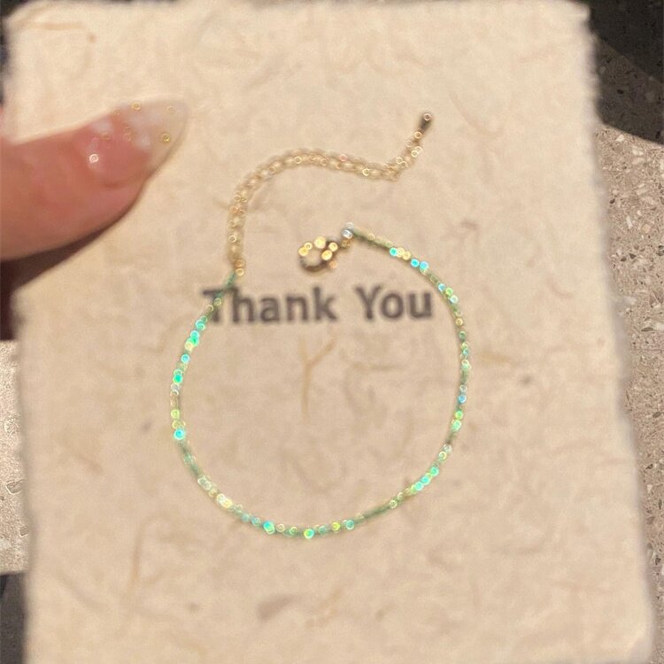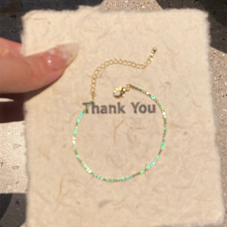 薄荷曼波绿色闪钻手链森系清冷高级感精致设计轻奢手饰小众设计感