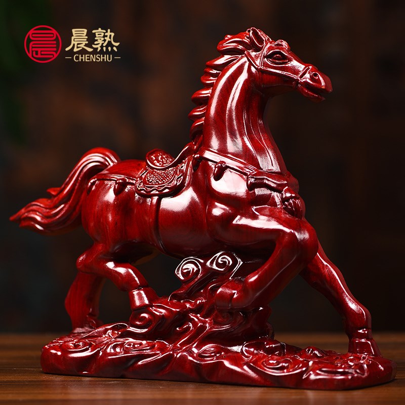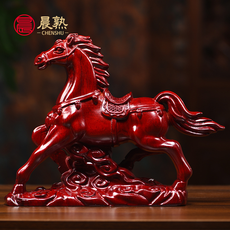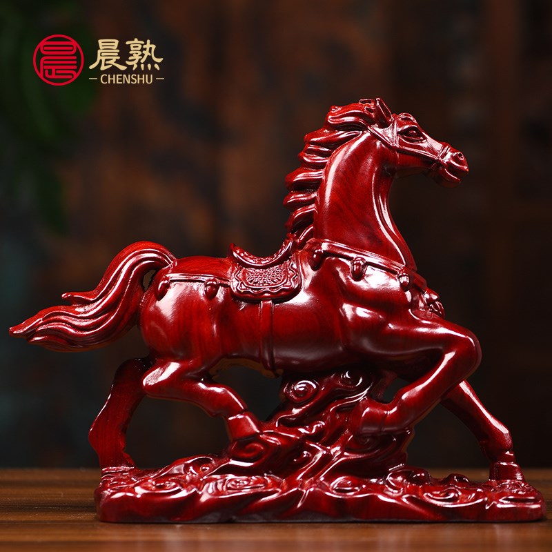 红花梨木雕生肖木马摆件实木装饰马到成功家居办公桌面摆设工艺品