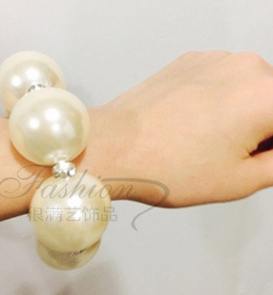 大珠手链仿珍珠手串 拍照写真舞会晚会饰品 夸张型手饰配钻圈手环
