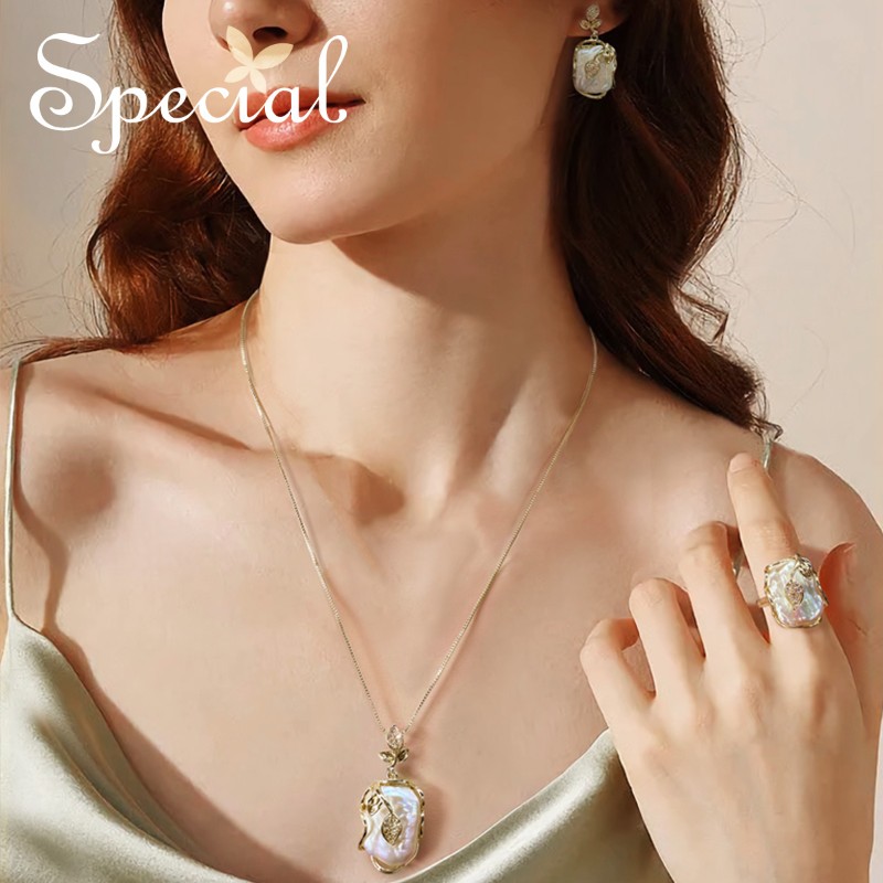 SPECIAL巴洛克淡水珍珠轻奢耳钉耳饰戒指项链吊坠套装女2025礼物