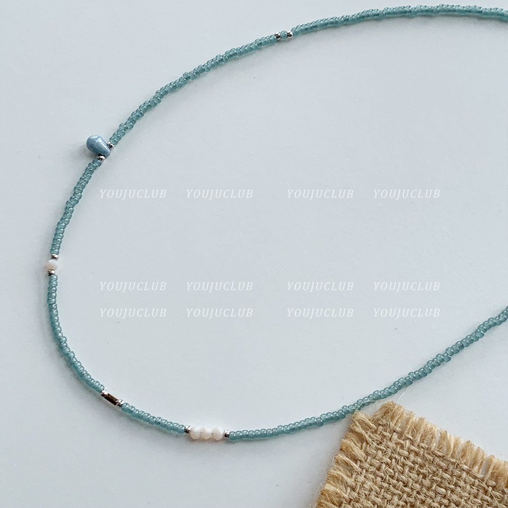 YOUJUclub-兰时叙~雾霾蓝色名族风水滴天然石串珠细款项链锁骨链