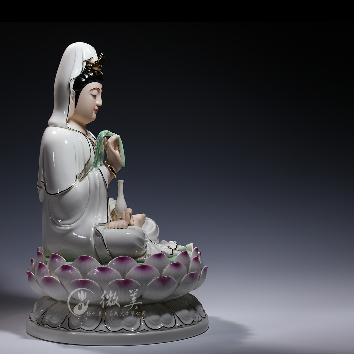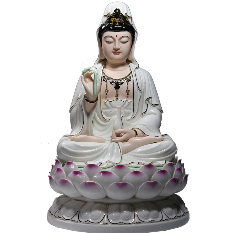 速发结缘10至1吋坐莲观世音菩萨像家居摆奉观音佛像供件用家陶瓷