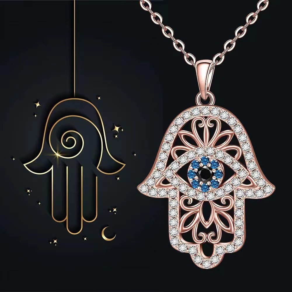 ins欧美跨境满钻法蒂玛手掌女项链亚马逊爆款哈姆萨手掌纯银吊坠
