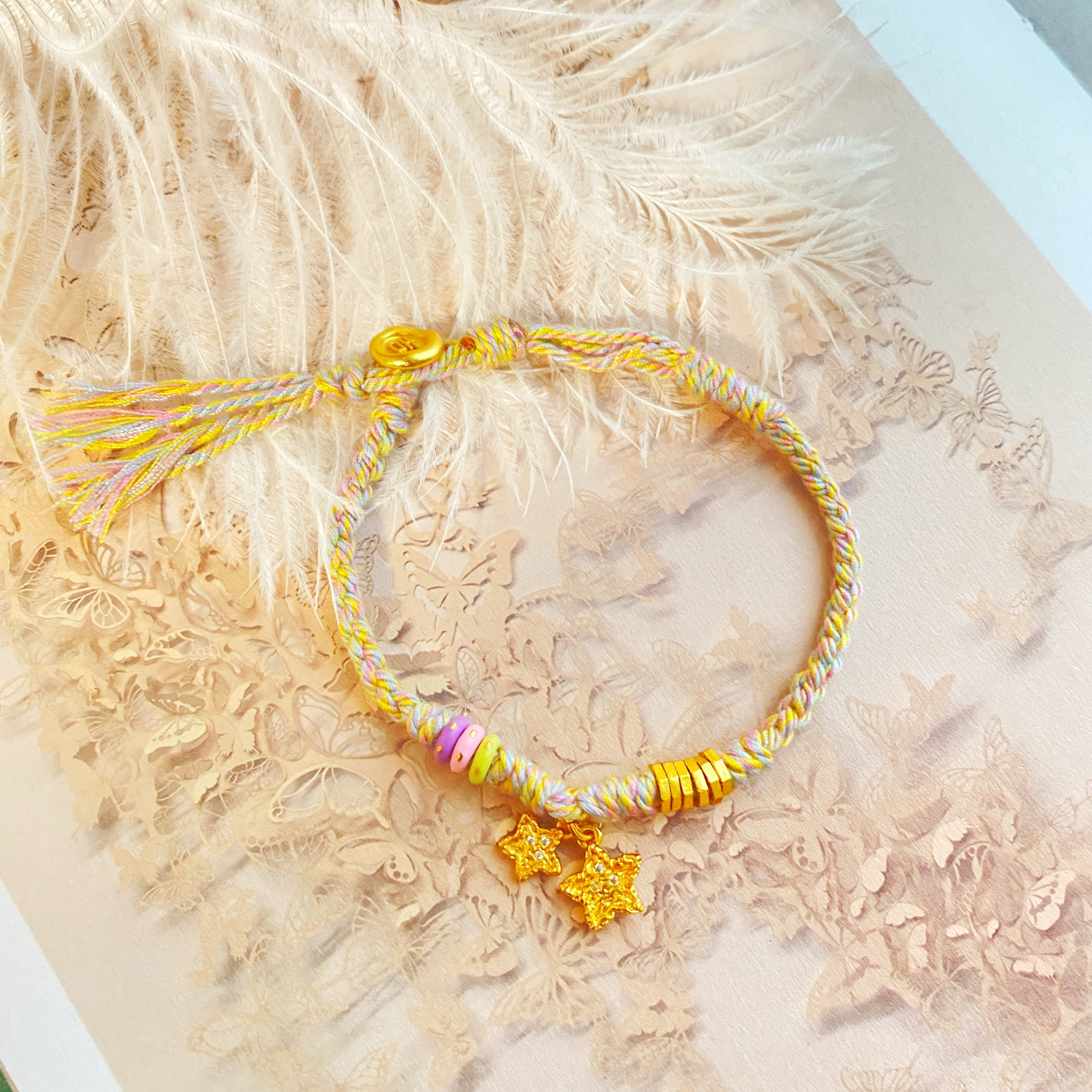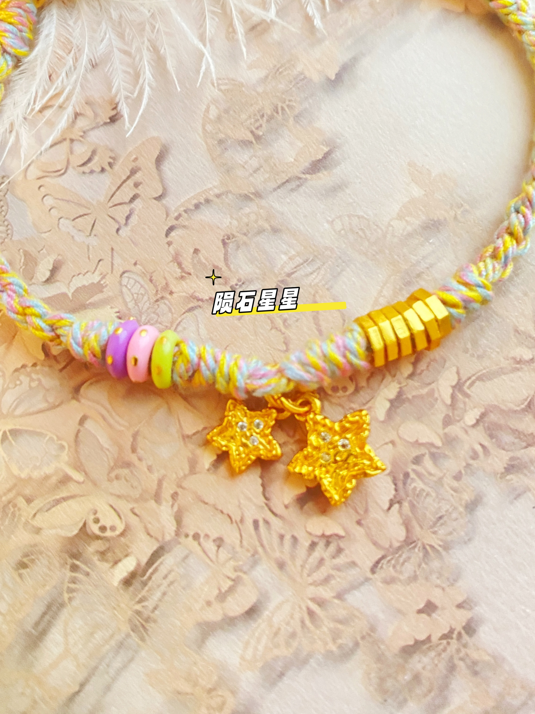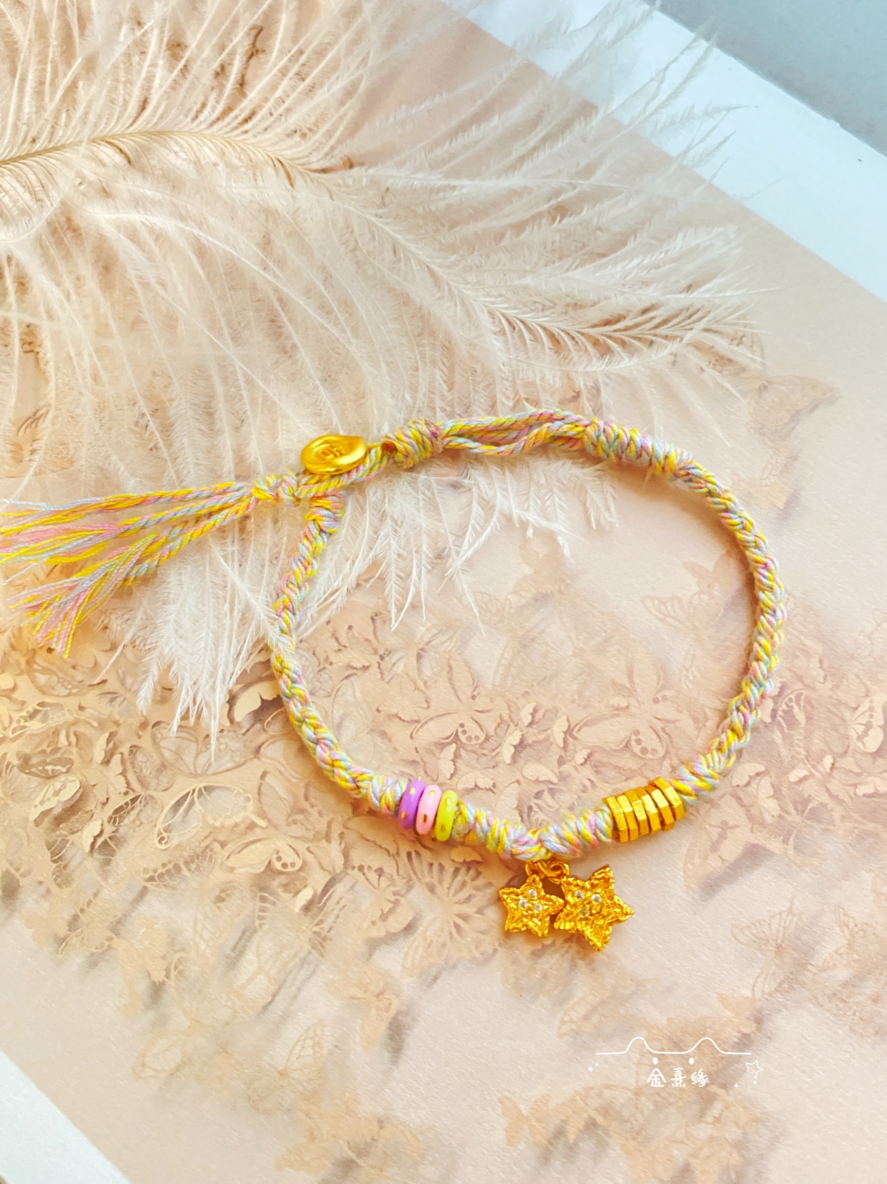 新中式锤纹星星吊坠彩绳编织转运珠手链女小众精致百搭盘缠手串女