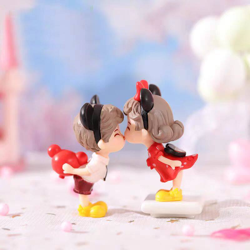 新款卡通情侣微景观桌面DIY水晶球配件 红裙发卡可爱亲嘴情侣摆件