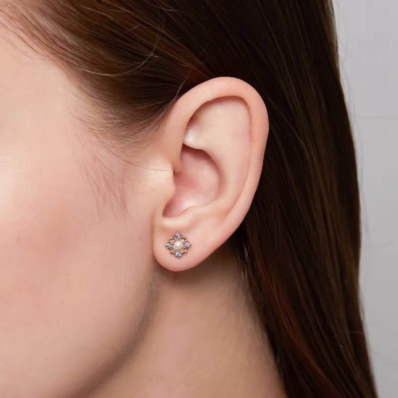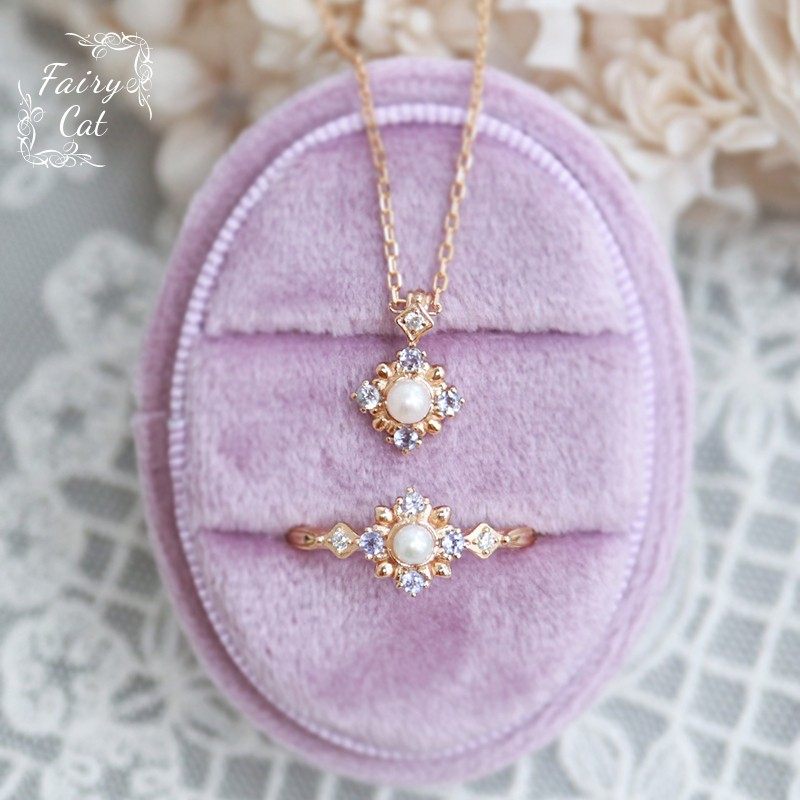 日系天然淡水珍珠坦桑石戒指项链耳环雪花棱形迷你925银饰