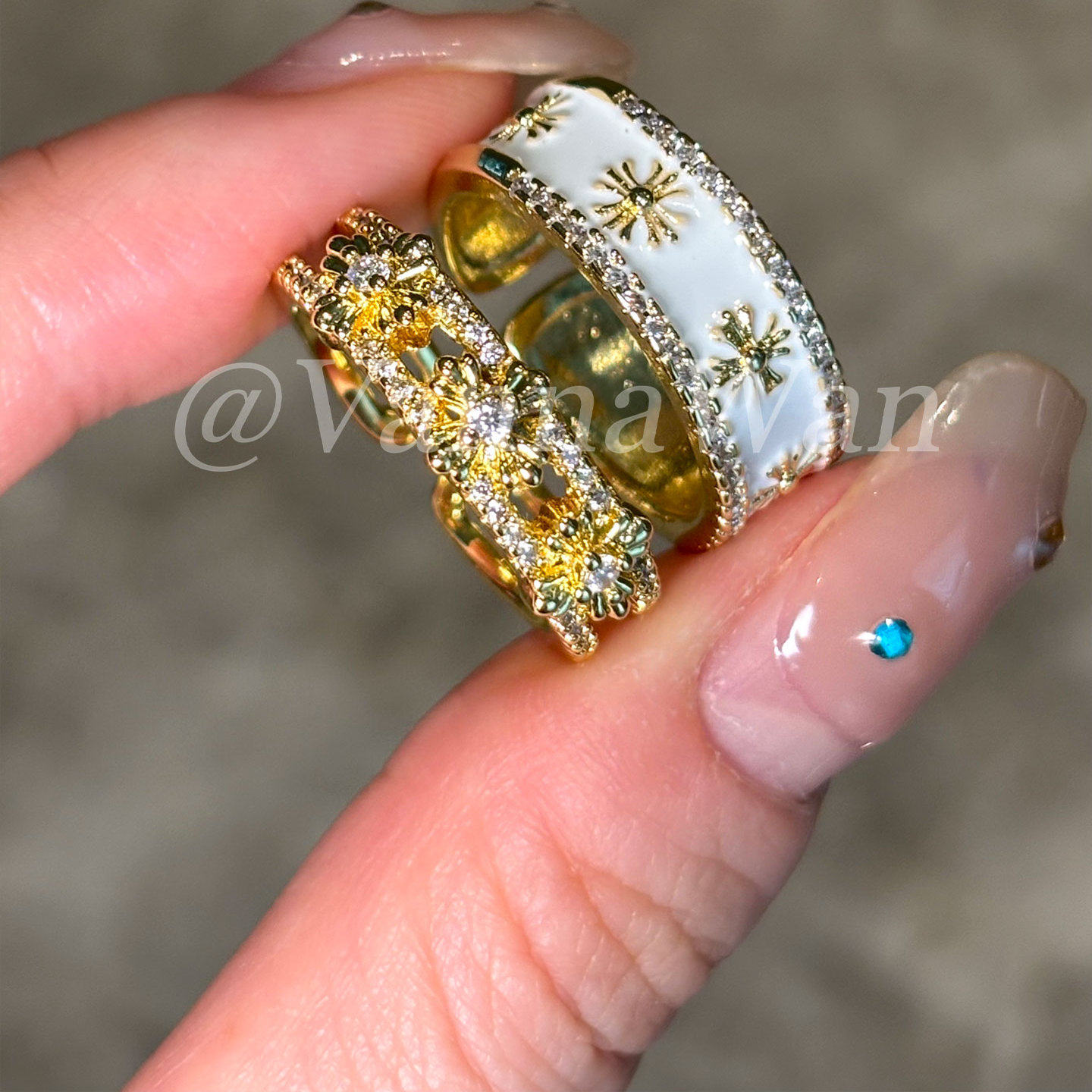 VanWan克罗之约!ins博主~十字架白色镶钻戒指十字叠戴时髦指环