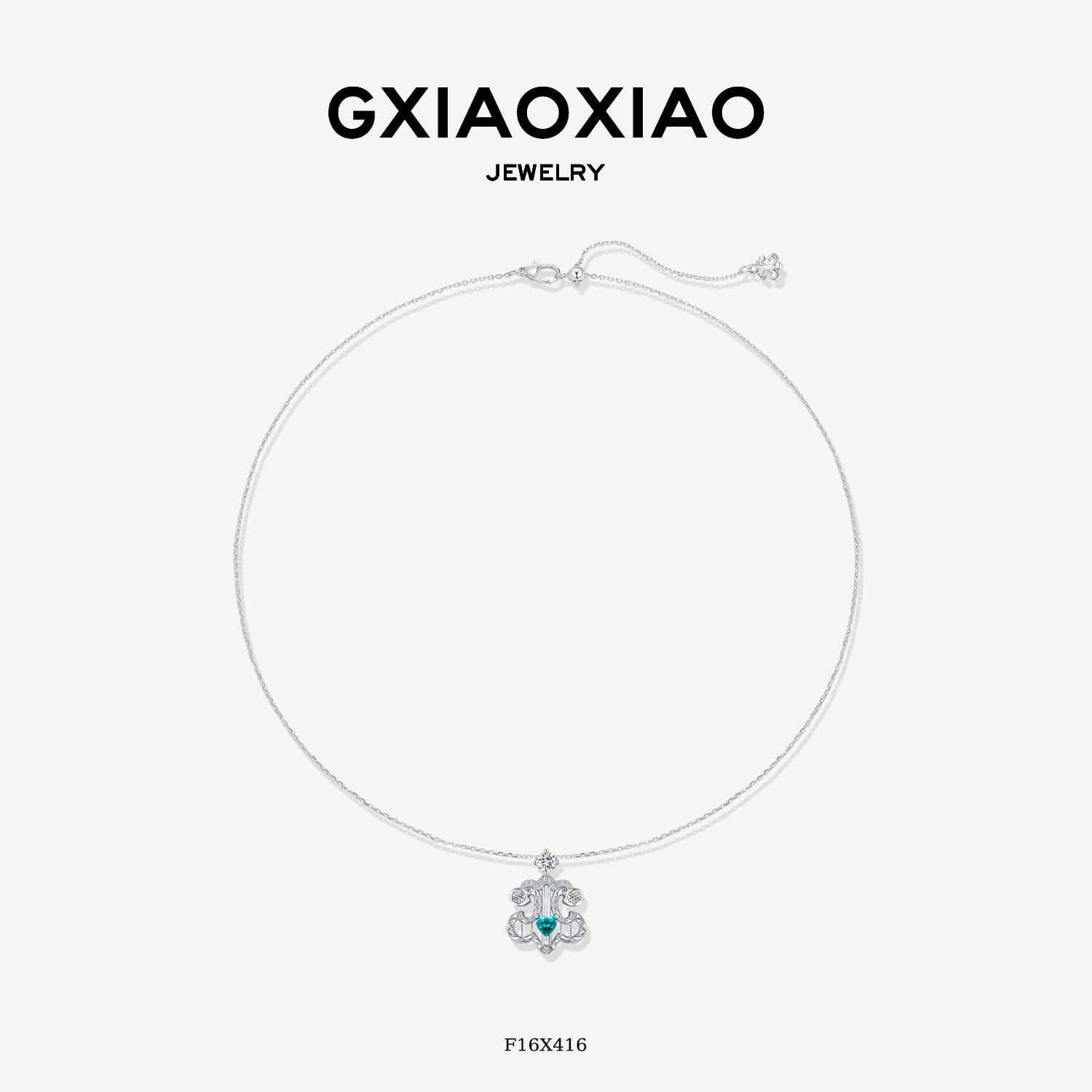 G XIAOXIAO【心鸢】法式高级设计蓝色竖琴爱心鸢尾花项链 F16X416