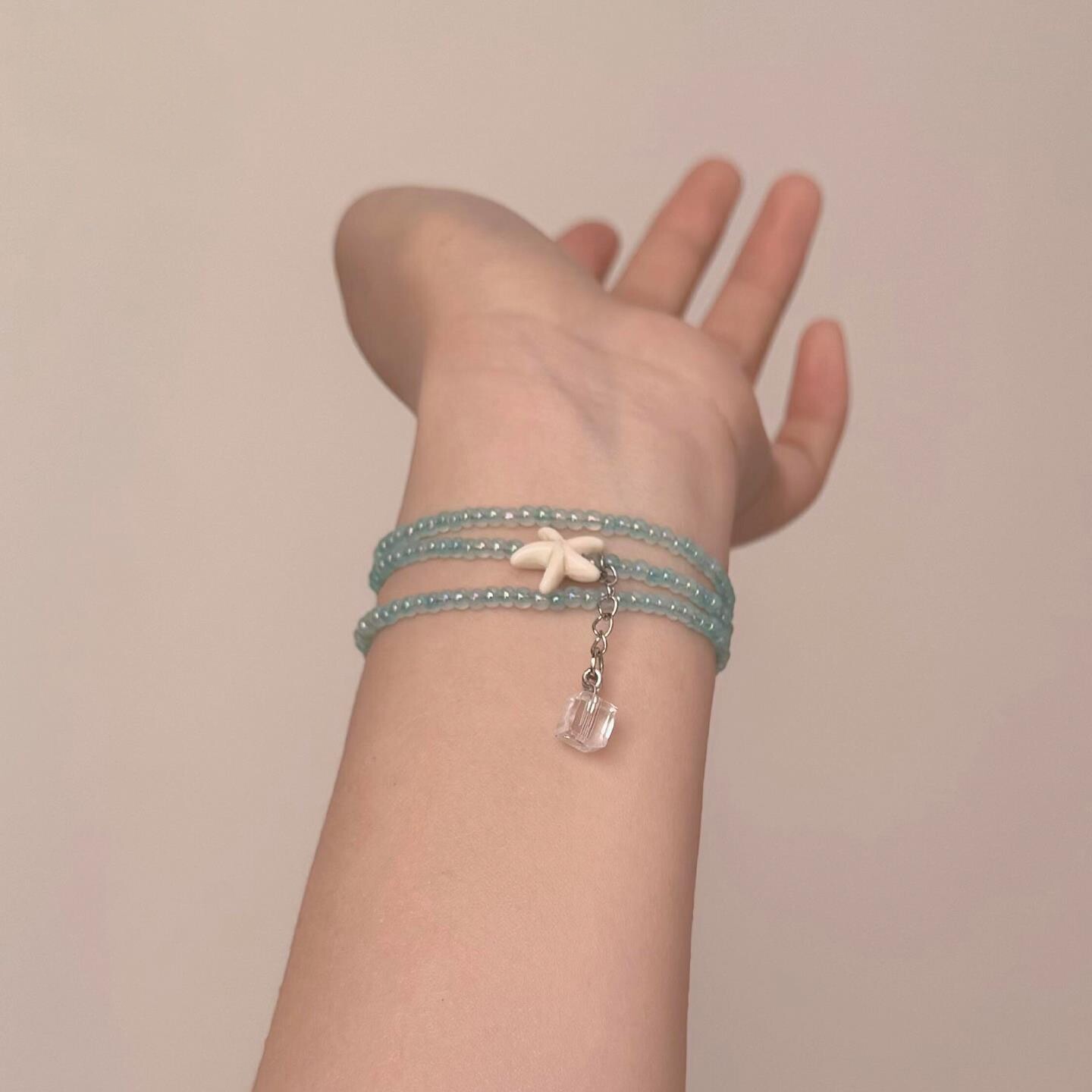 度假风仿白松石海星蓝色米珠项链精致甜美小众设计夏天海边锁骨链