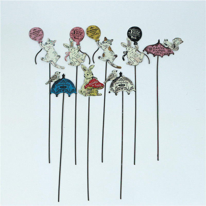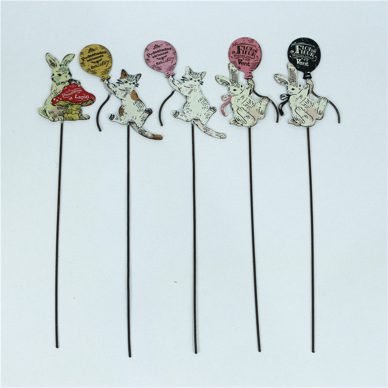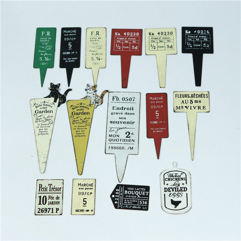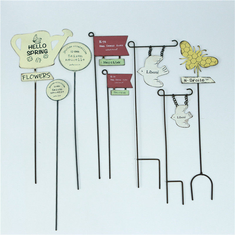 日系ins风铁艺做旧花盆装饰插牌花插盆栽小插件标签zakka园艺杂货
