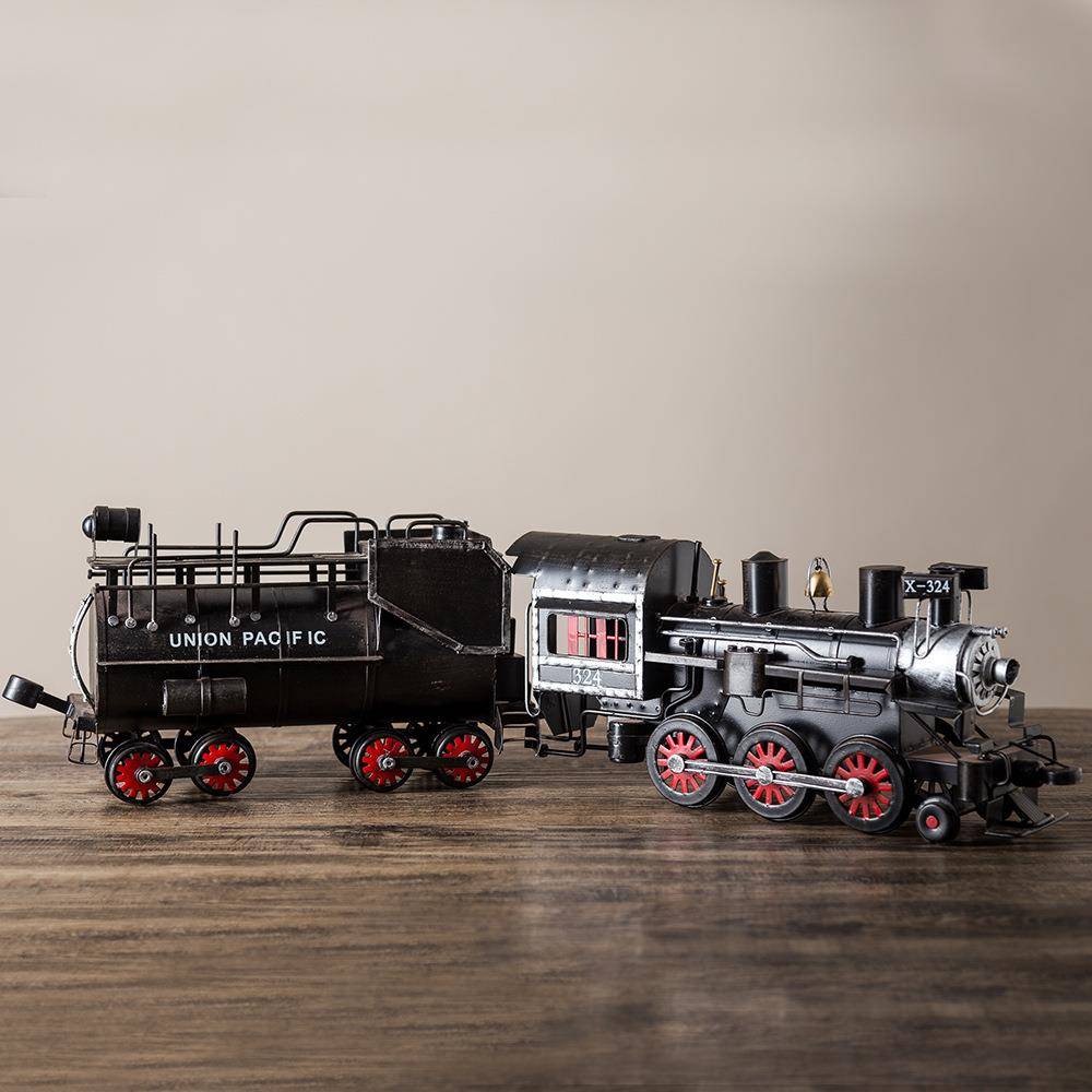 复古怀旧铁艺蒸汽车机头火车模型装ALU摆件家居饰品创意工艺品模