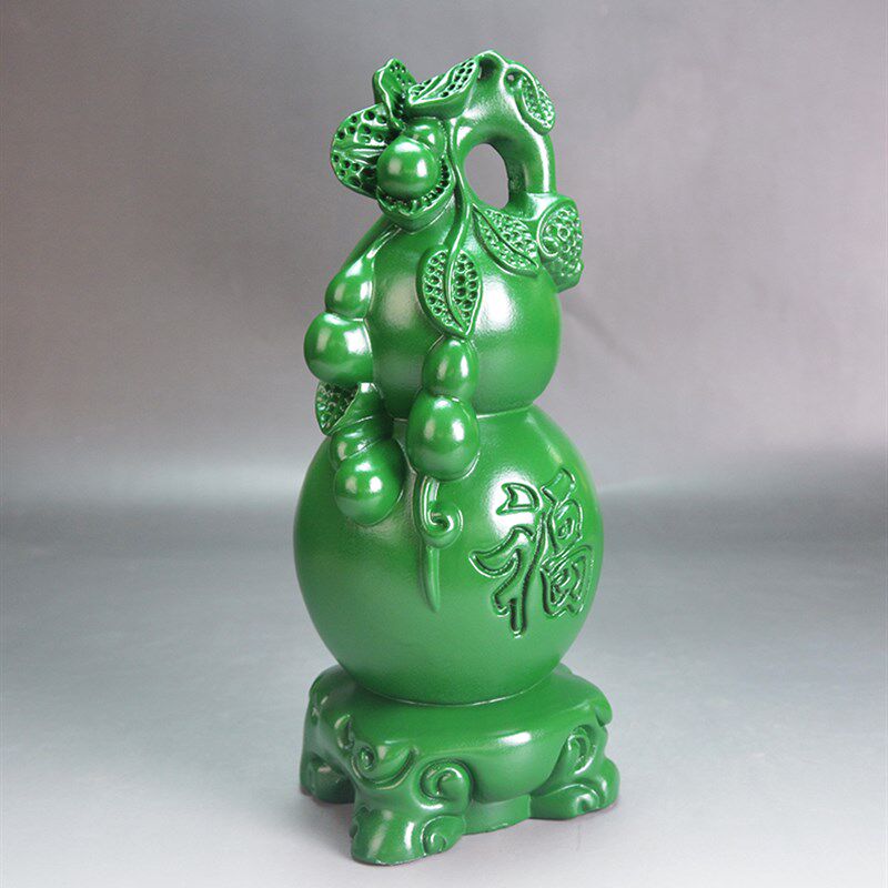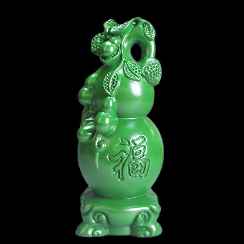 速发绿色实木雕刻福禄葫柜摆件红木家居客厅电视送办公装饰工艺品