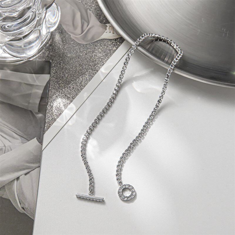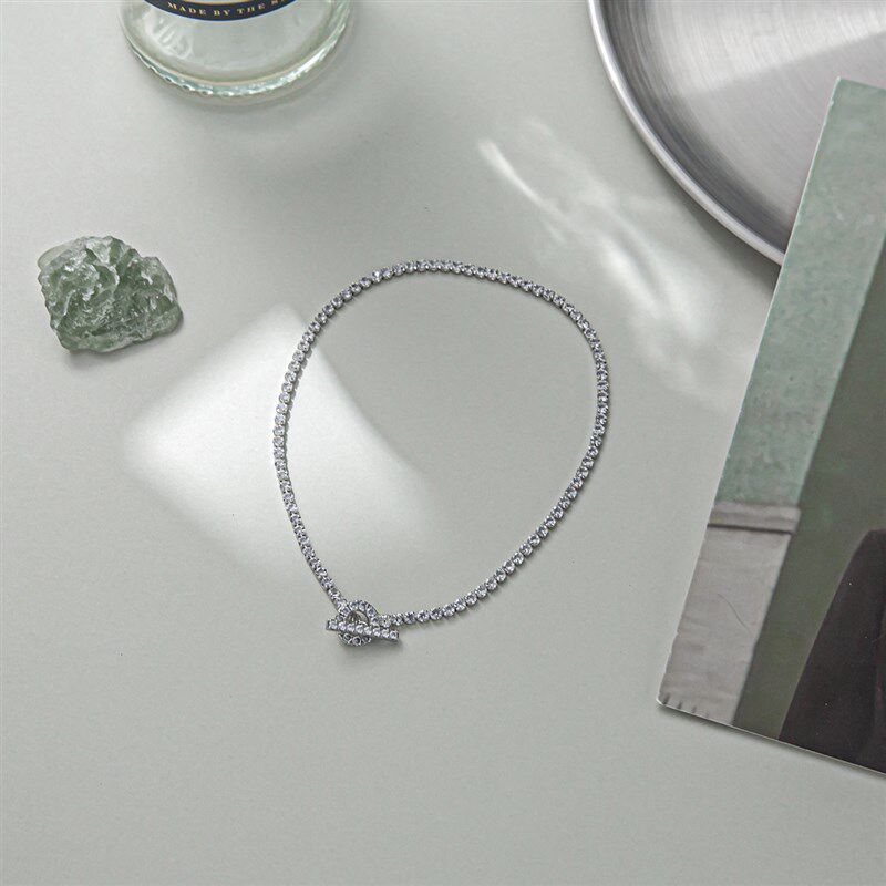 欧美ins酷潮冷淡风项饰 小众时尚个性银色满钻T链条锁骨链项链女
