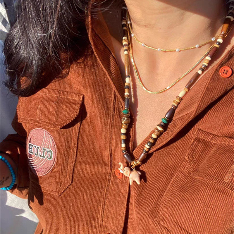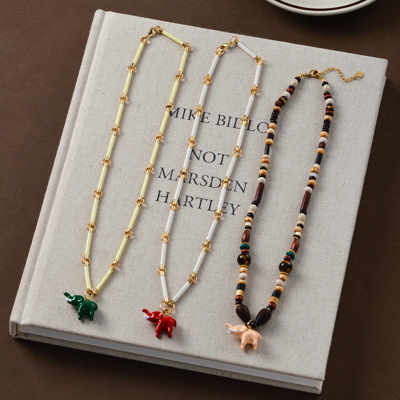 绿色小象珐琅吊坠项链女轻奢小众设计高级感可拆卸串珠竹节锁骨链