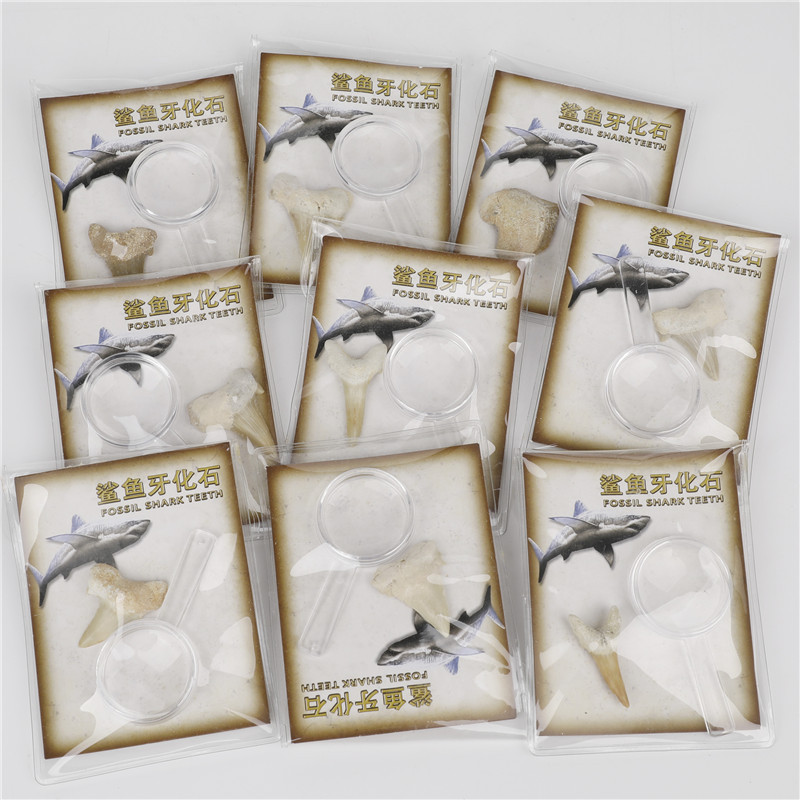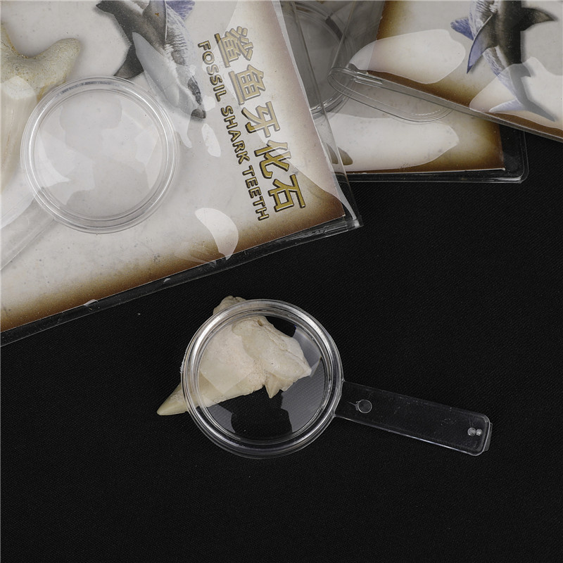 中文版pvc袋装鲨鱼牙标本盒装鲨鱼牙化石放大镜学生海洋科普材料