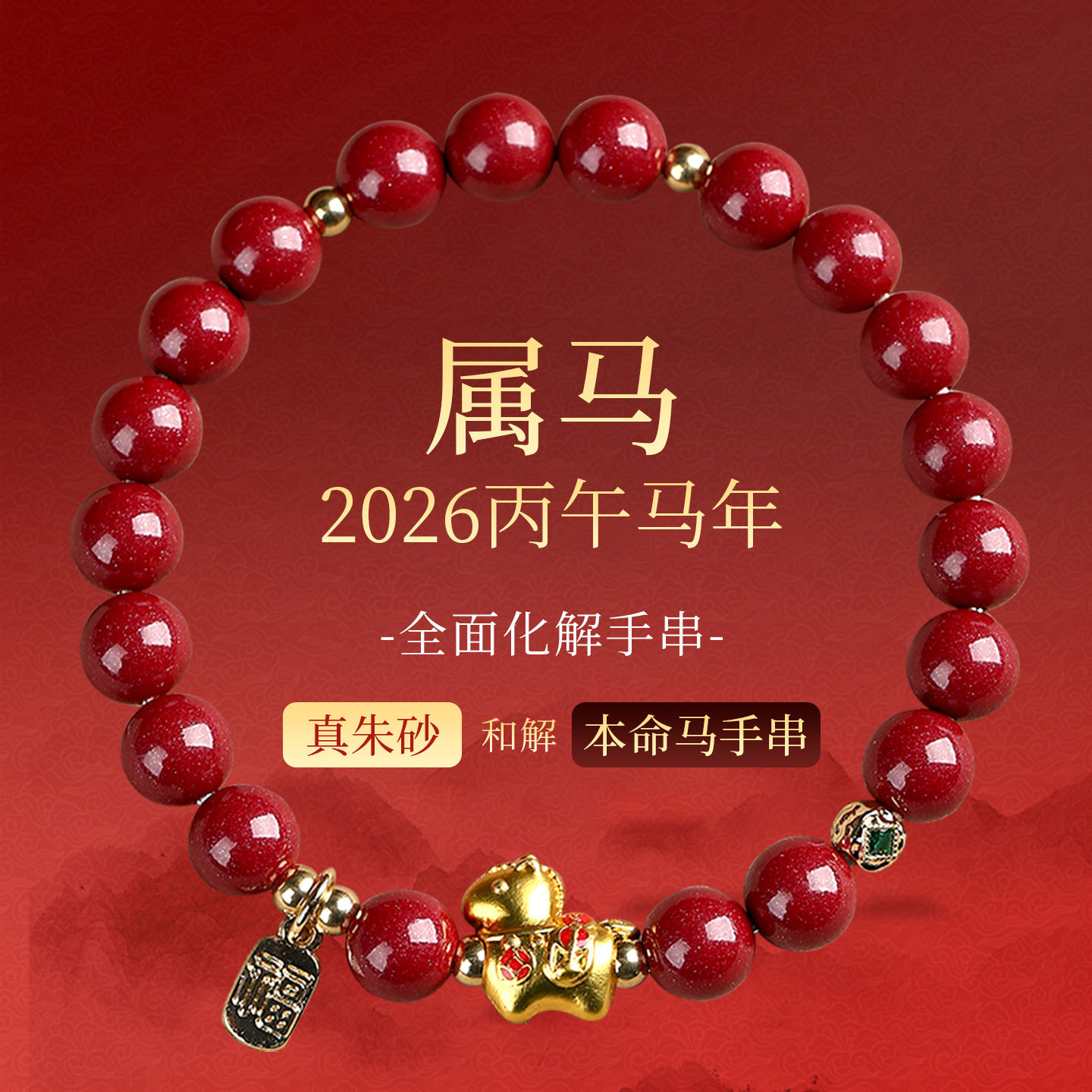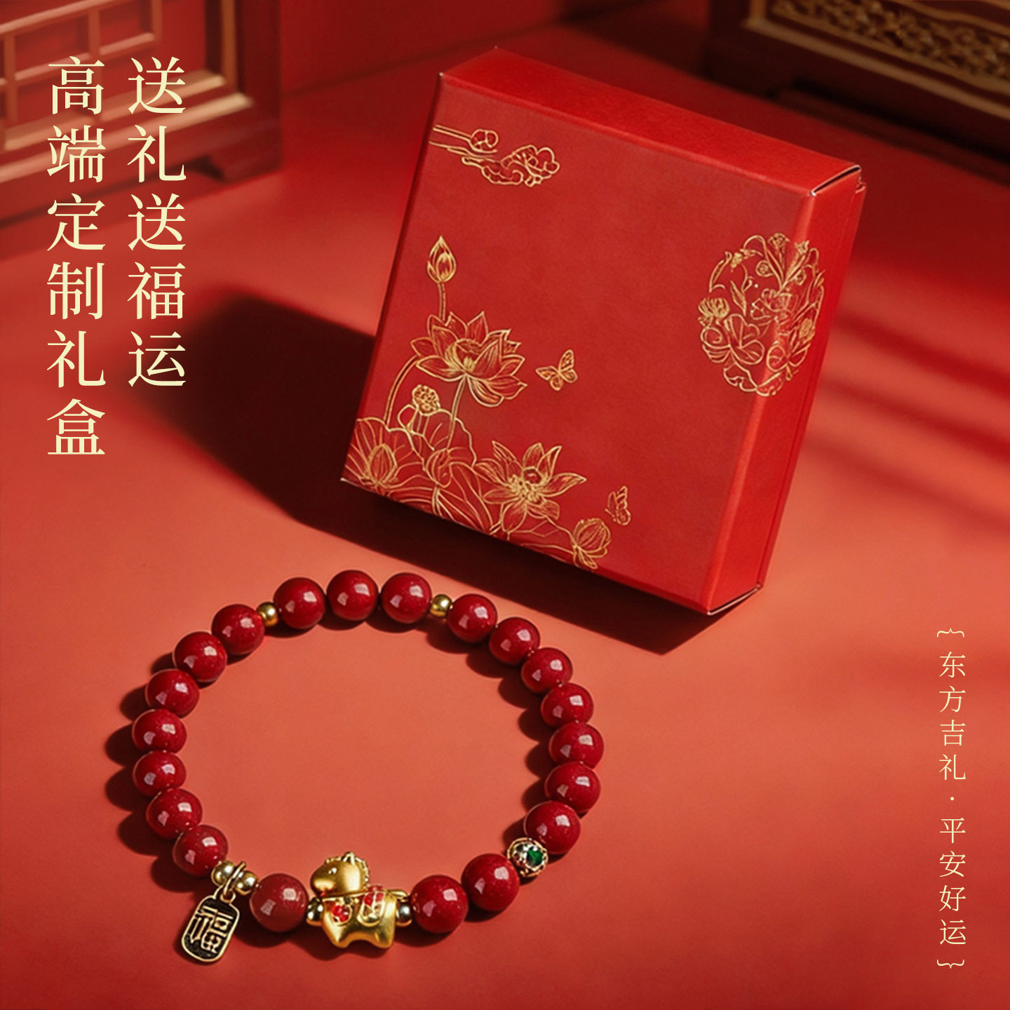 招财纳福马年朱砂手串女款轻奢高级感本命年红色紫金砂手链礼物男