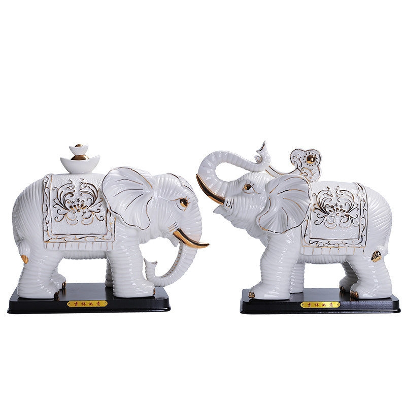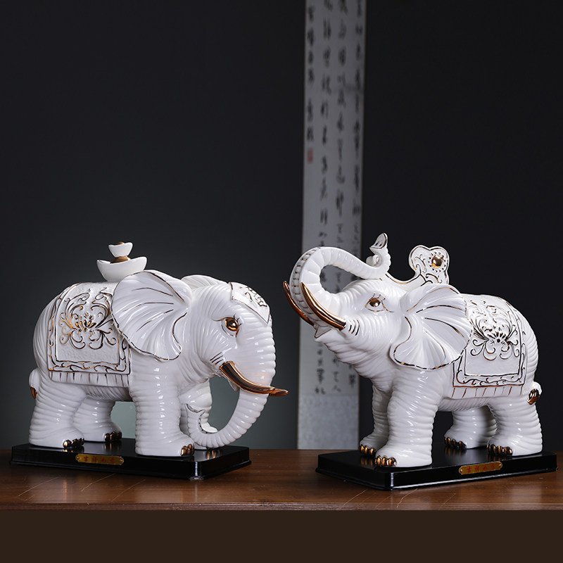 白色陶瓷大象摆件一对吉祥如意招财现代家居客厅装饰乔迁开业礼品