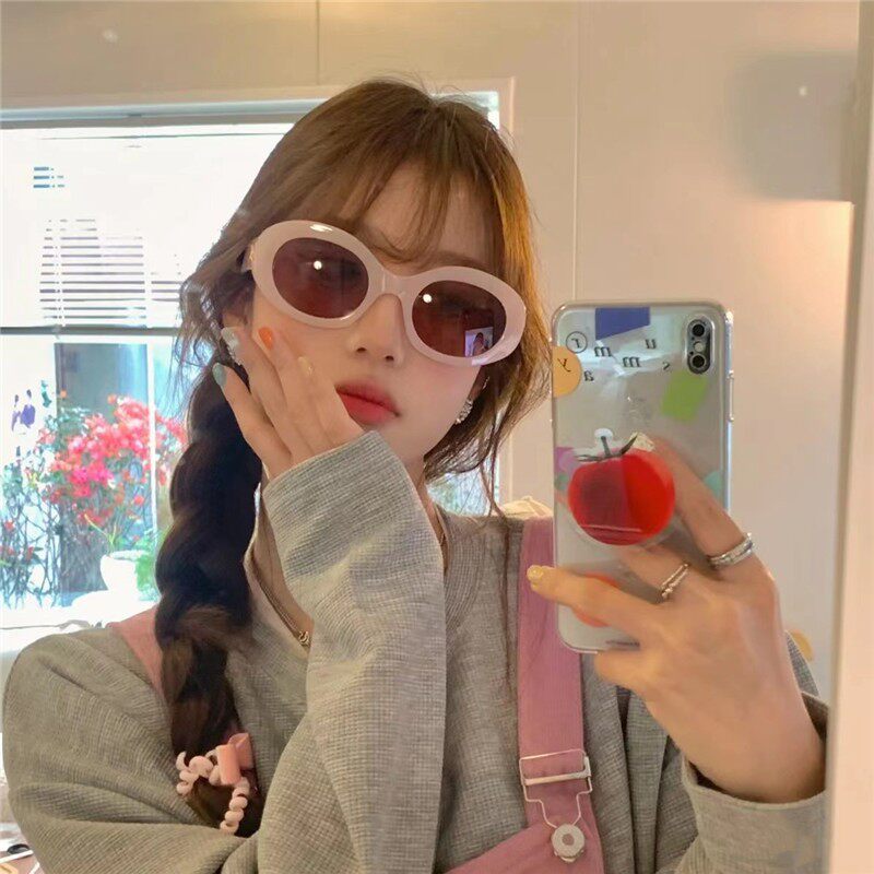 韩版新款软妹凹造型椭圆果冻粉墨镜海边度假遮阳防紫外线太阳眼镜