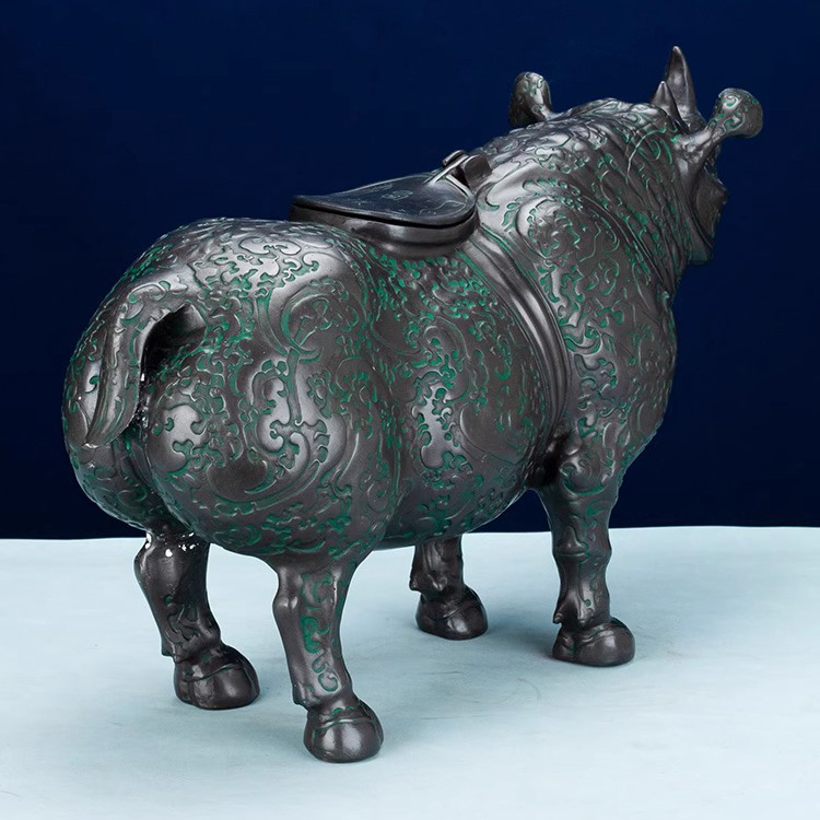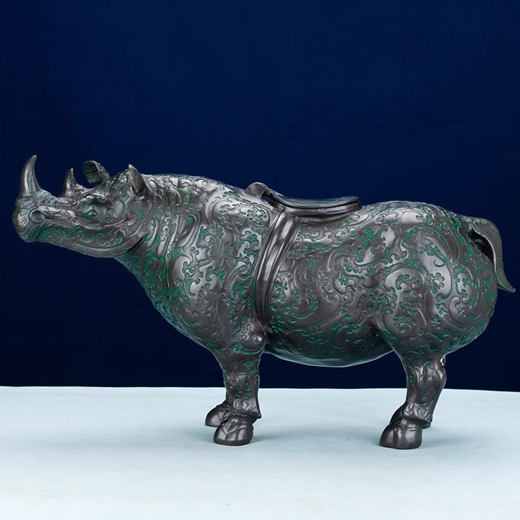 威弗列德铜犀牛摆件纯黄铜犀牛尊酒尊仿青铜器办公室客厅家居饰品