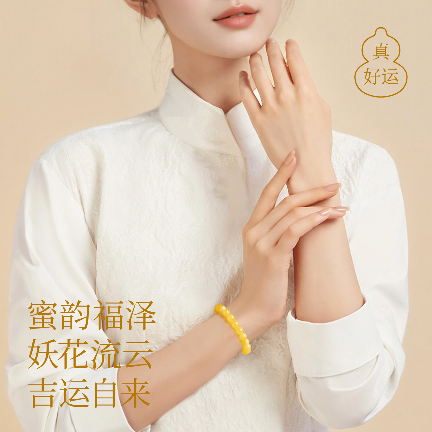 天然妖花蜜蜡手串女款男官方旗舰店高端俄料琥珀鸡油黄白花蜜手链