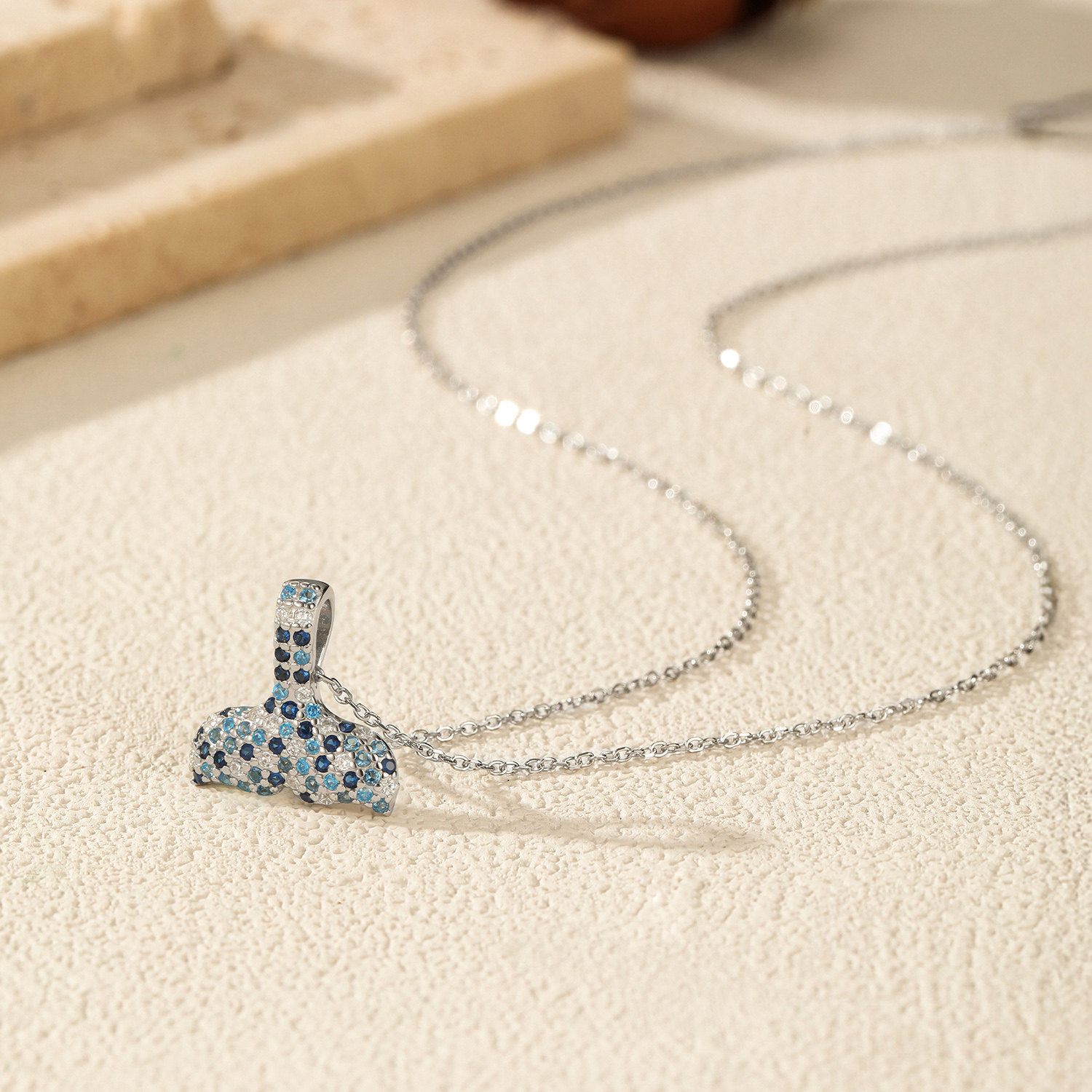 【雅影】蓝色满钻鱼尾S925纯银项链女小众设计高级感精致女士吊坠