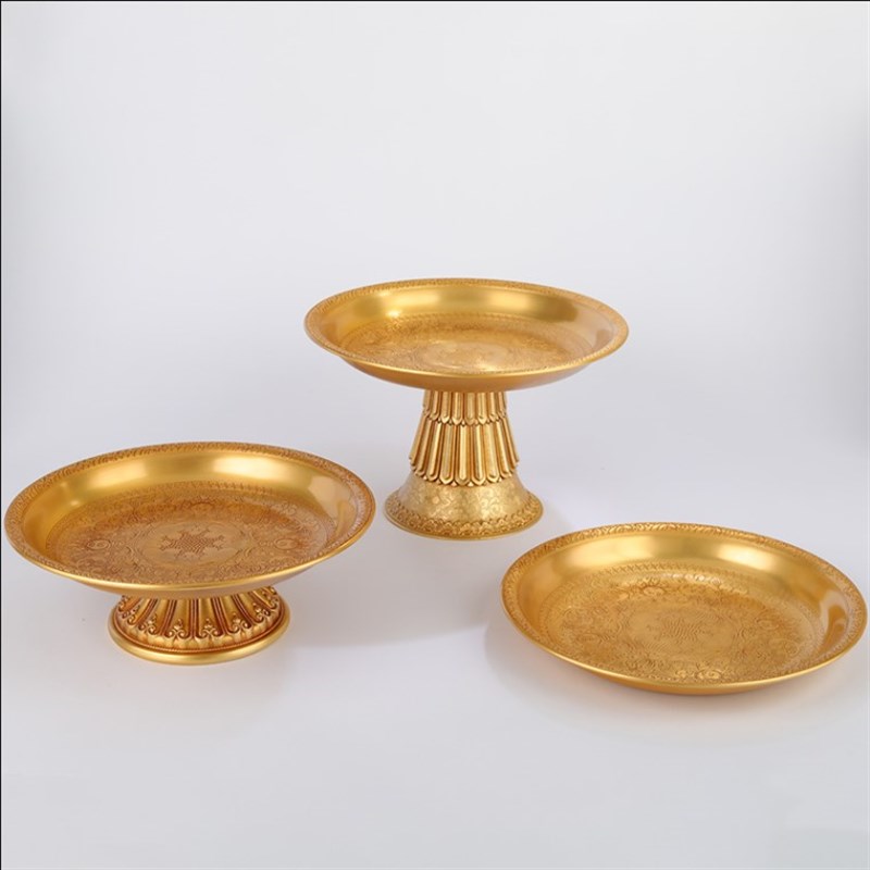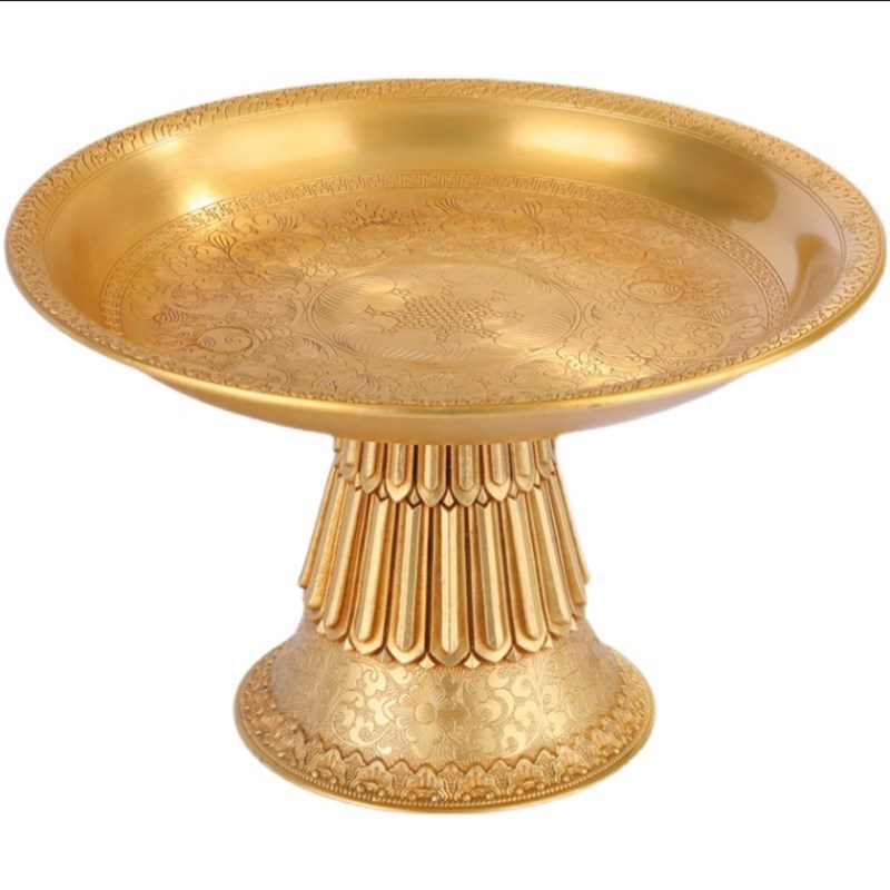 慧宝藏式吉祥花纹纯铜水果平底托盘底盘高脚曼扎多用托盘家居摆件