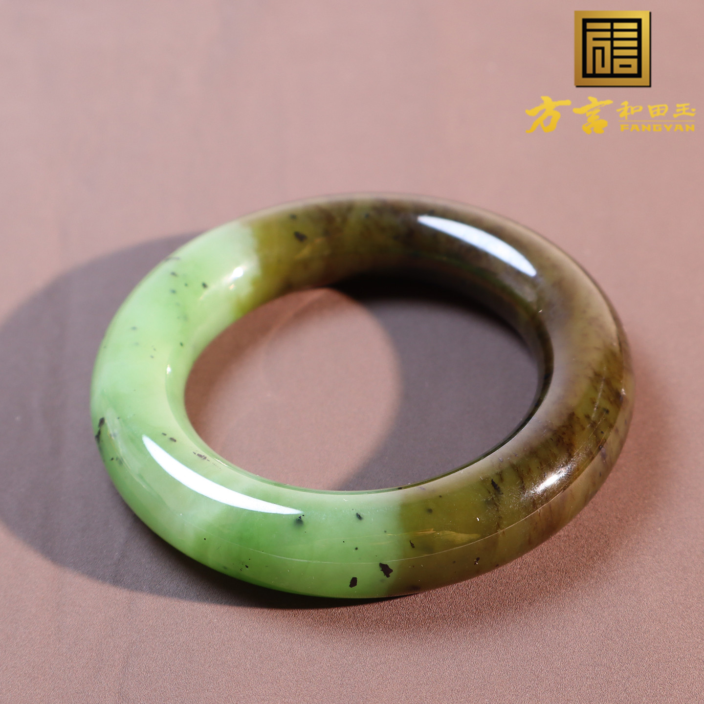 上新了方言和田玉特色俄料乌兰海碧玉苹果绿带糖56mm胖圆手镯A2