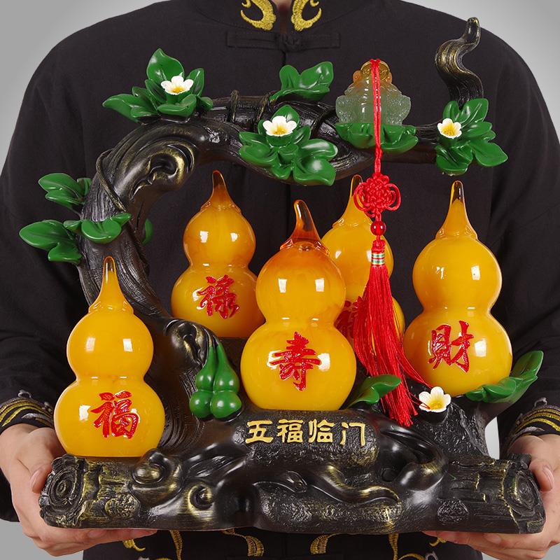 玉葫芦摆件中式大号 招财玄关家居客厅酒柜装饰 乔迁开 业创意礼