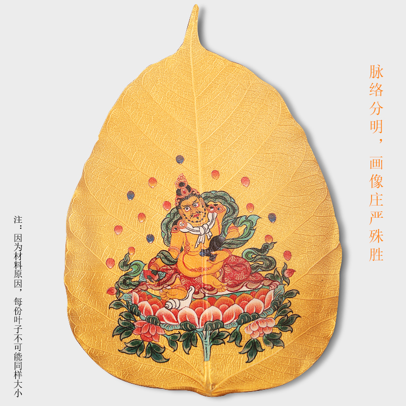 王师兄木质彩绘菩提叶摆件生肖本命黄财神树叶标本可定图高透玻璃