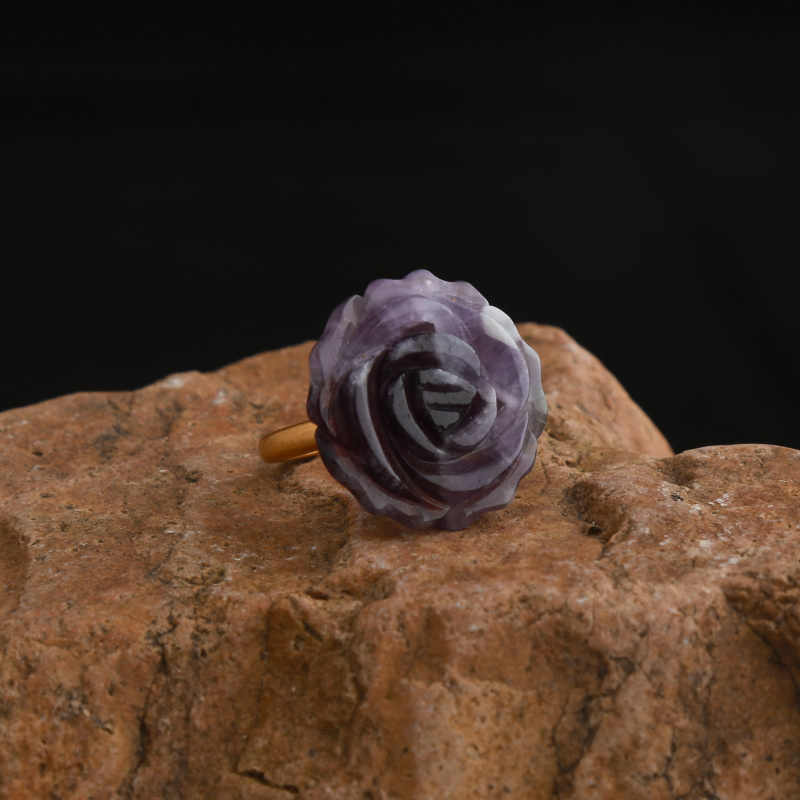 紫色粉色蓝色水晶玫瑰花戒指小众复古轻奢设计感女士戒子饰品手饰