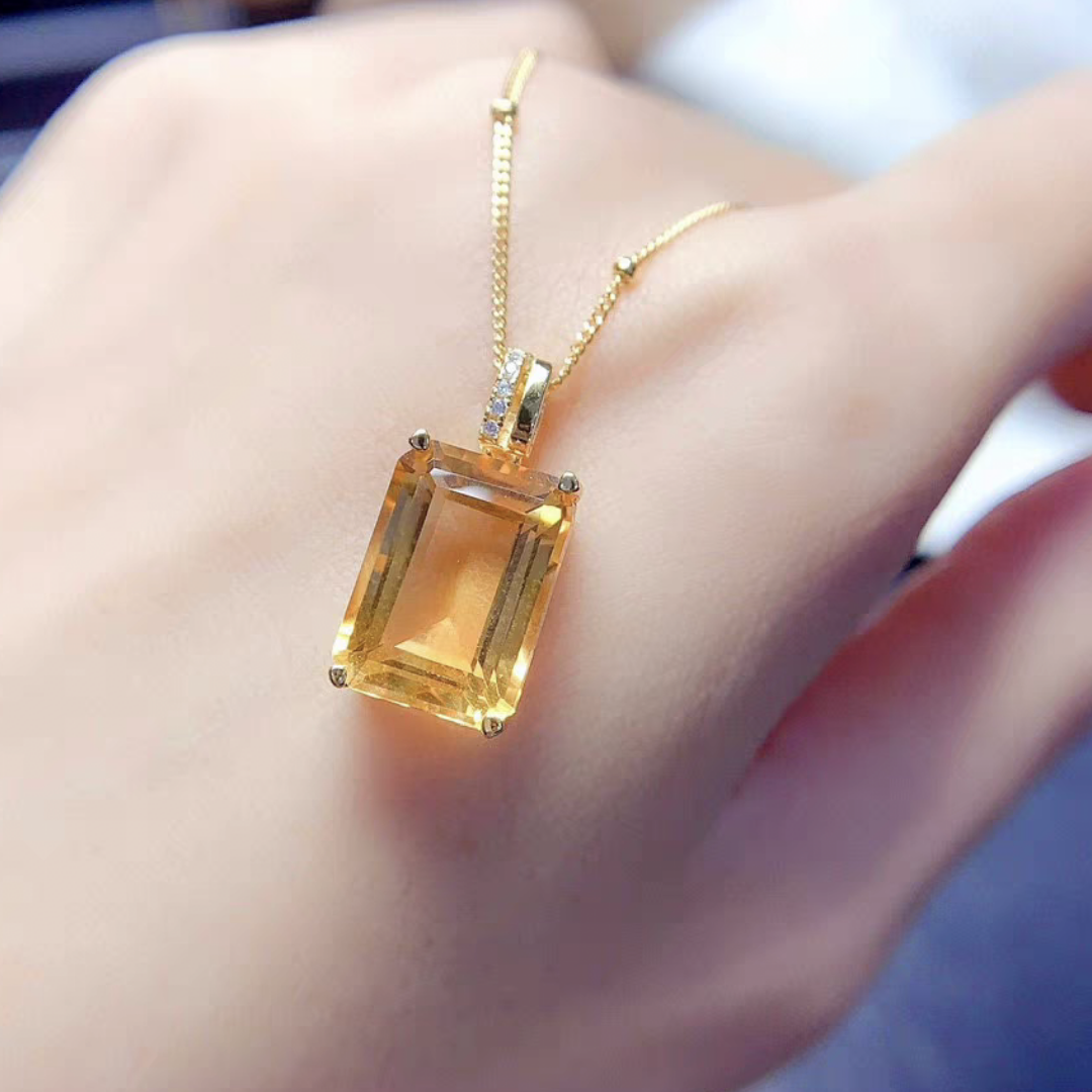 天然黄水晶吊坠轻奢小众网红公主925银项链挂件戒面饰品礼物证书
