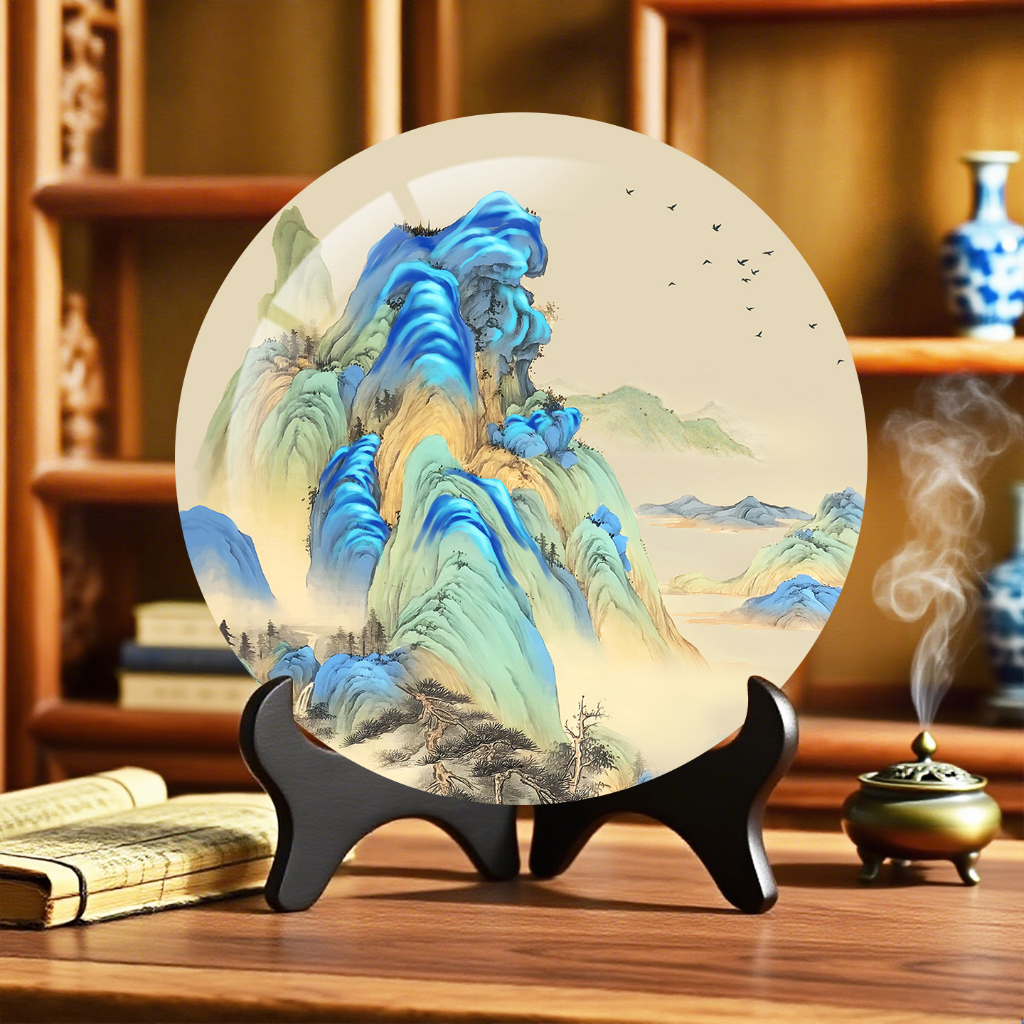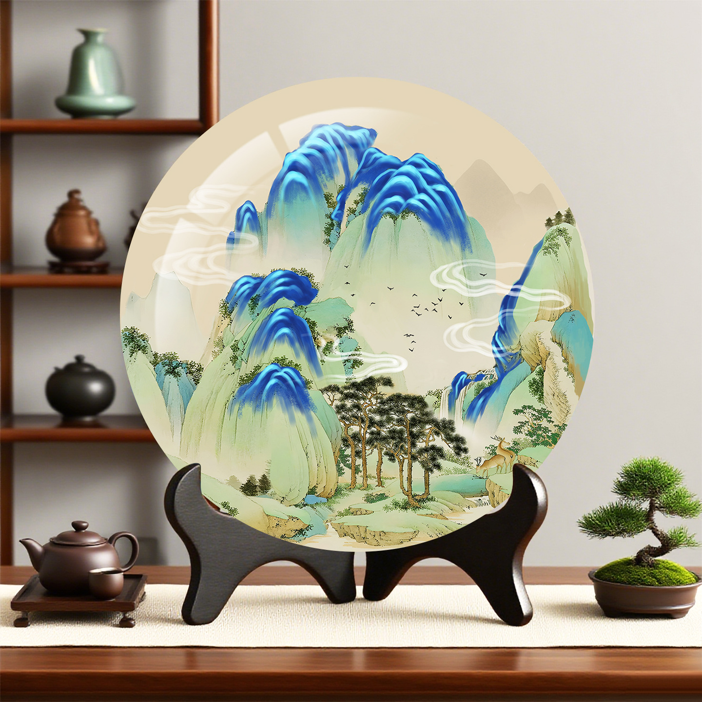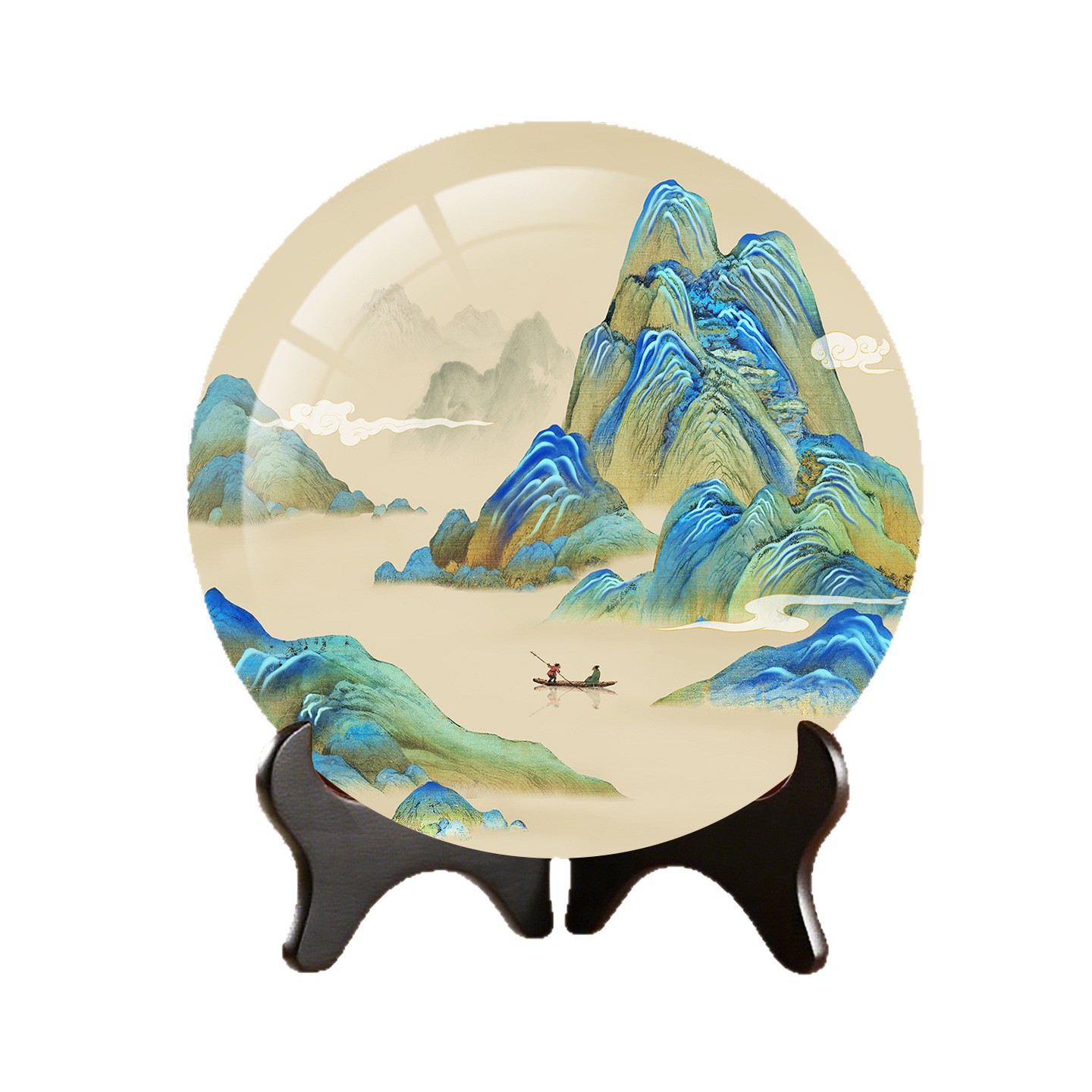 千里江山图装饰品办公室桌面书架摆件新中式工艺品山水画摆盘