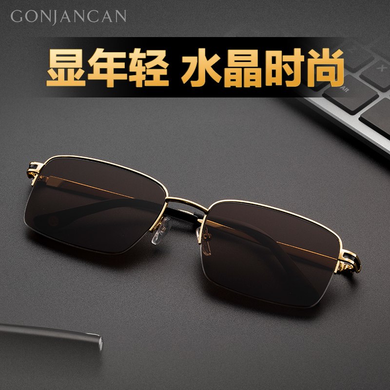 老人水晶眼镜男士水晶石墨镜清凉石头太阳镜高清钓鱼养眼中老年人
