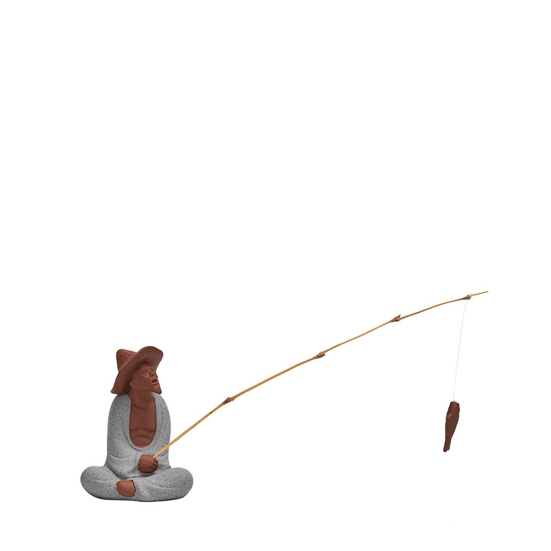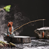 创意陶瓷人物姜太公钓鱼老翁摆件微景观渔翁水族流水器造景装饰品