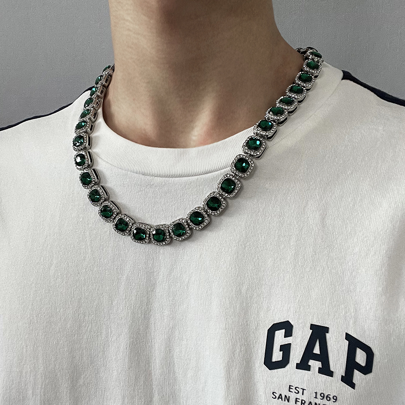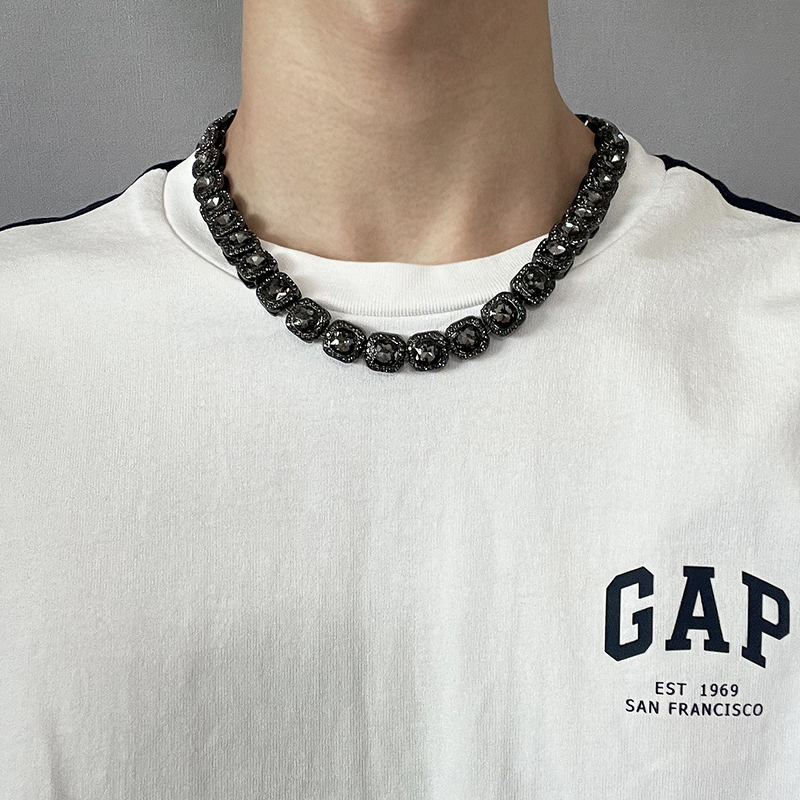 满钻冰糖项链男高级感欧美嘻哈四方钻锁骨链子男潮古巴链男士饰品